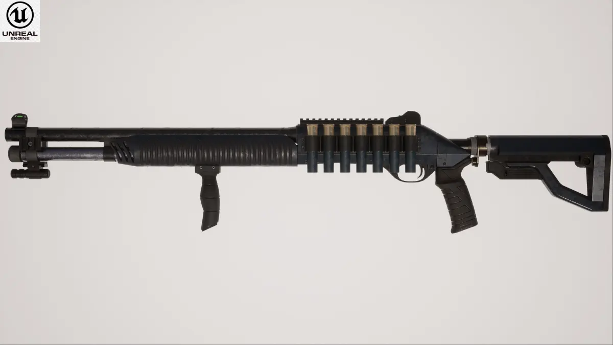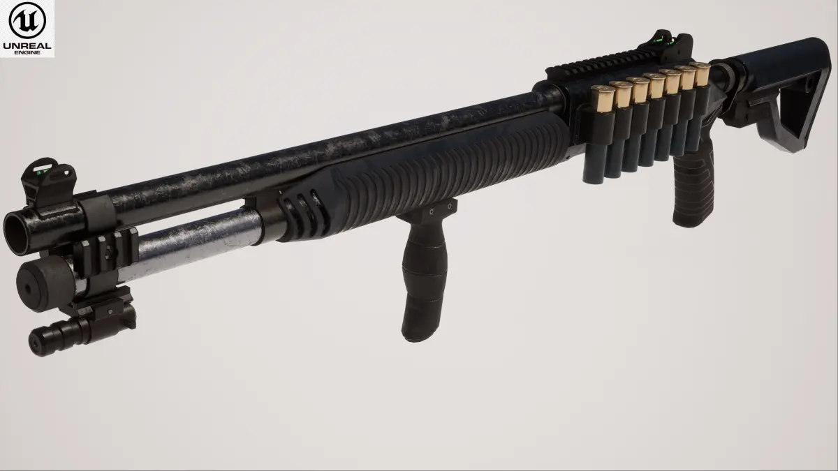 This Shotgun 1 Used is a high quality, photo real model that will enhance detail and realism to any of your rendering projects. File units - cm. The model has a fully textured, detailed design that allows for close-up renders, and was originally modeled in 3ds Max 2021 and rendered with Unreal Engine 5 and V-Ray.