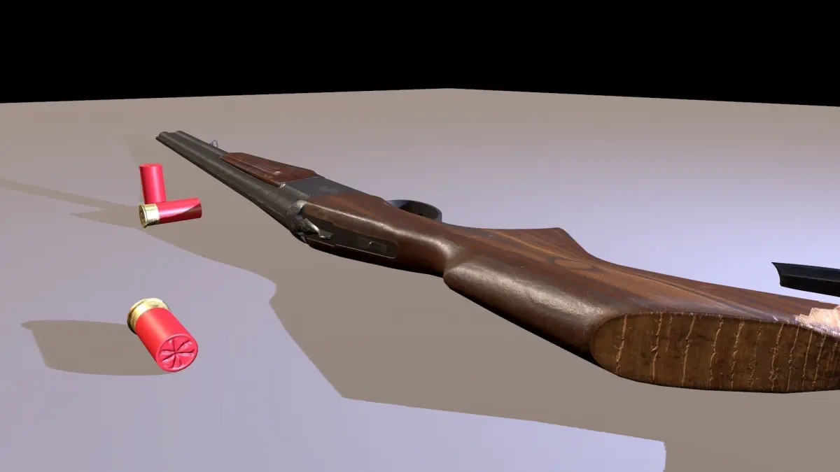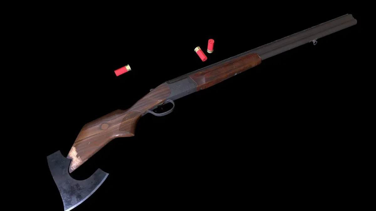 Shotgun IZH axe 4k texture, rigged, game ready with 12 gauge cartridges
