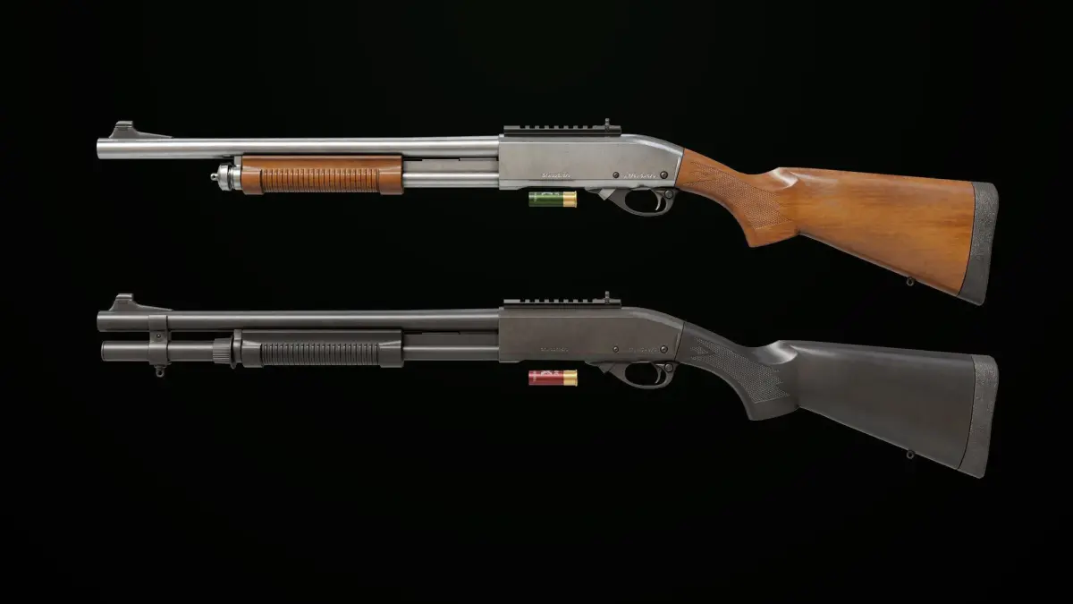 The Photorealistic 3D model of Shotgun 01 Wood and Black With Single Material. This model is suitable for any visual production - broadcast, high-res film close-ups, advertising, games, design visualization, forensic presentation, etc