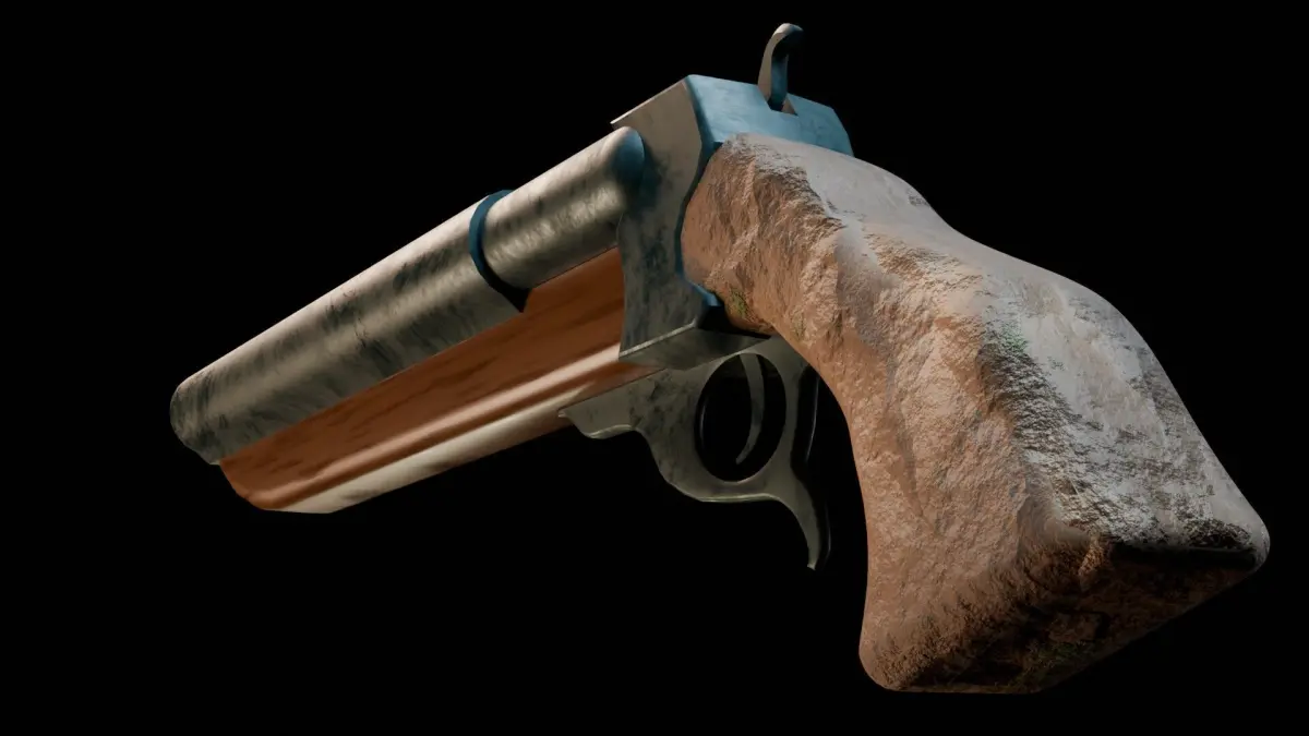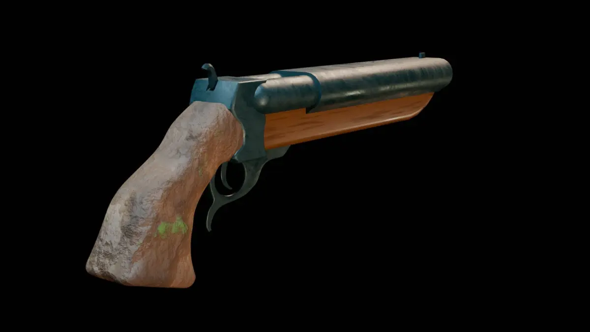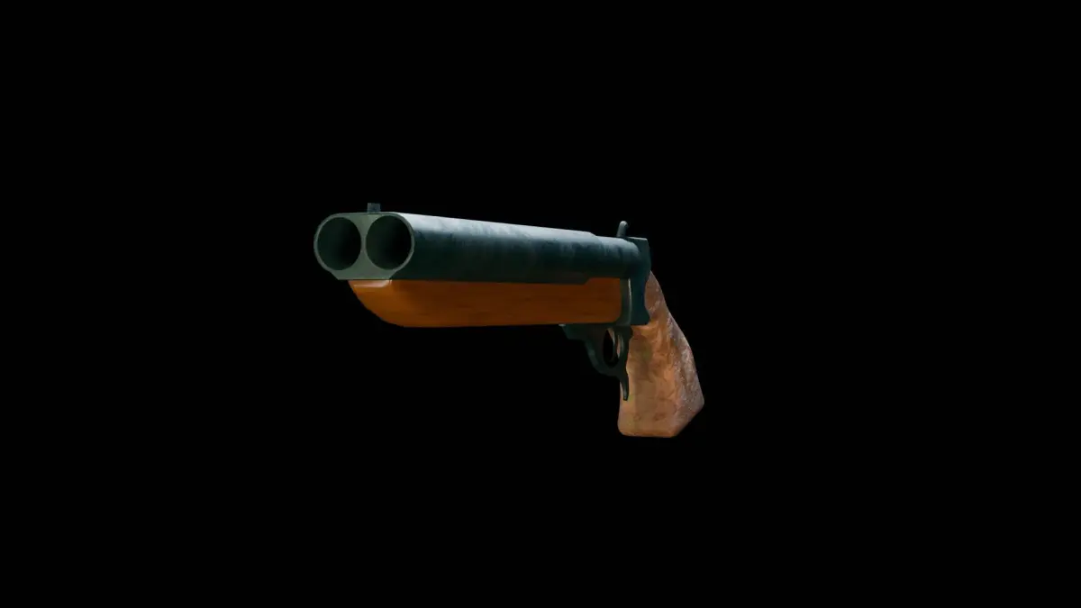 3d low-poly model of a double barrel shotgun, created in blender 4.2.2.