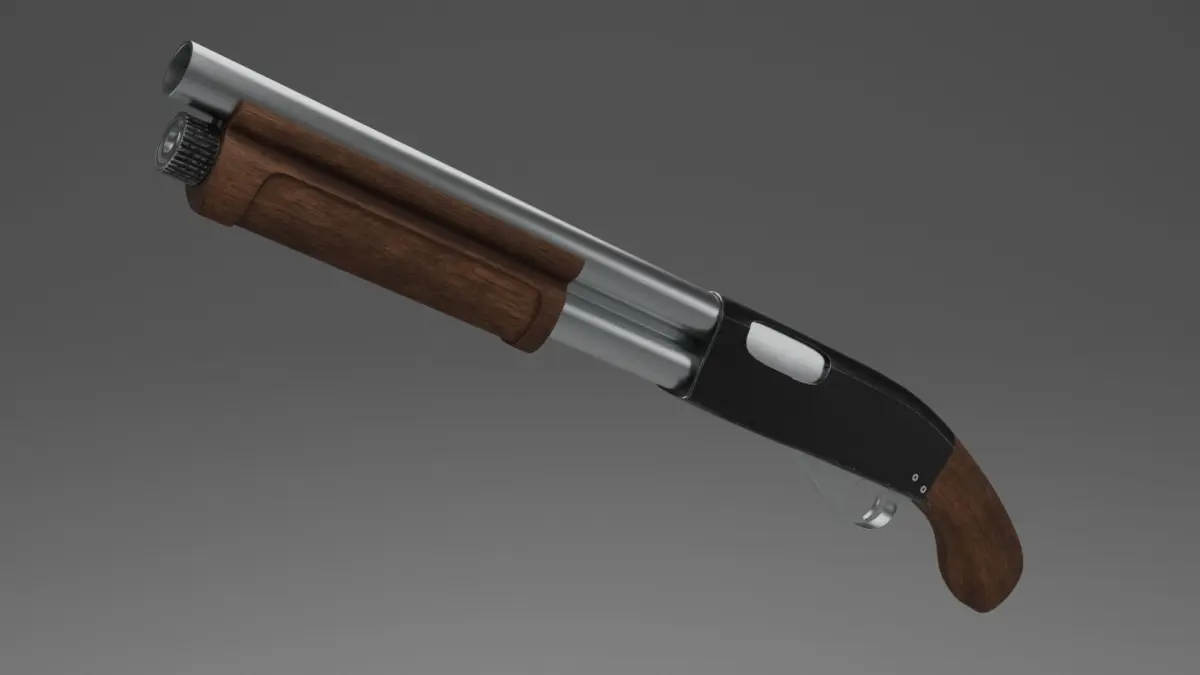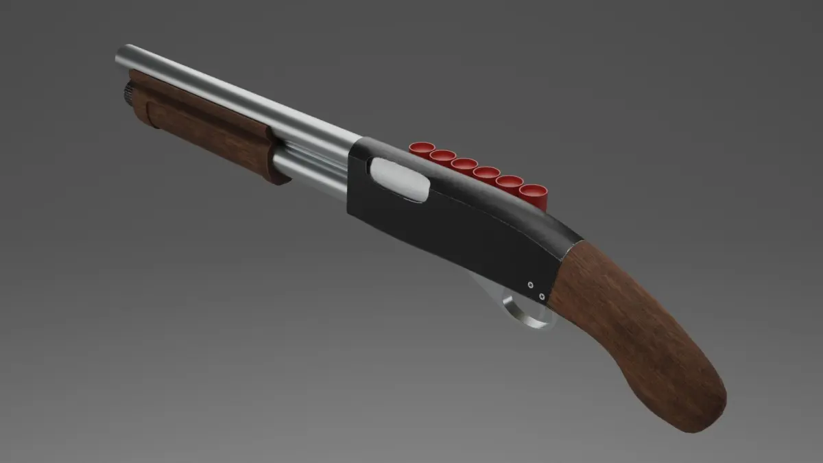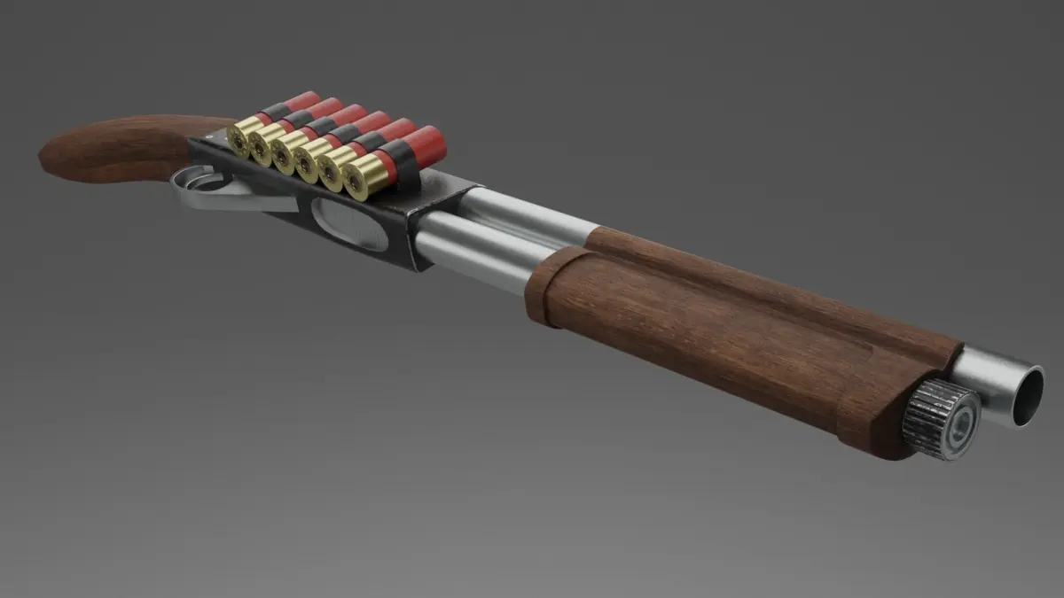 Shotgun 3D model with detailed body and aged design. In addition to the shotgun itself, the model contains ammo and mounts for them. On the body there is a shutter and a chamber.