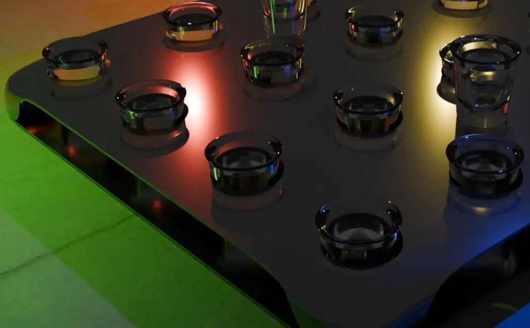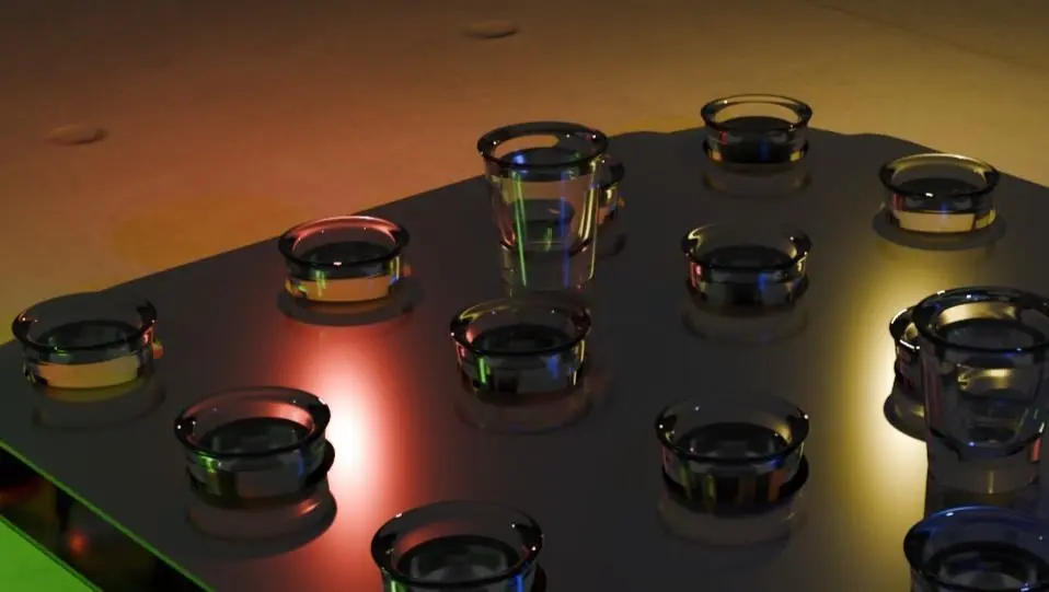 free 3D shots glass shots with metal tray.blend, fbx, stl, mtl, obj, x3d.