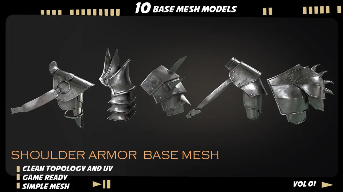 Greetings, dear friends.Have you ever wondered about the crucial element needed to bring a character in a game or animation to life?Indeed, it is the character's attire.In gaming and combat animations, armor plays a vital role in providing protection.Fortunately, I have a solution to fulfill your armor needs.By creating pre-made armor base meshes for the character's shoulders, you can easily design these models to perfection.Utilizing these basic mesh models will significantly enhance your workflow efficiency, resulting in remarkable outcomes.Essentially, you will be entrusting an essential aspect of your work to someone else.