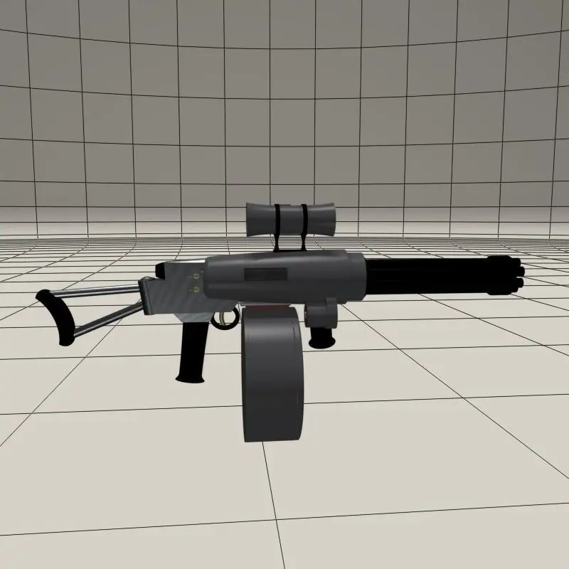 Real 3d Shoulder Fired 6 Barrel Mini GunThis is a miniture design based on the legendaryvulcan 6 barrel 20mm cannon.The model features rotating 6 barrel gatling style and animated fire with safety and fire select switches.the 350 round Ammo drum is removable.demo vidro https://drive.google.com/open?id=1D0j0wHoiW612adf-nbQsOfO0XLPyDB3v