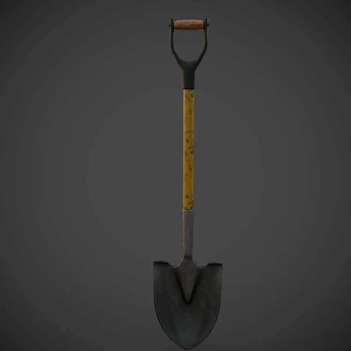a shovelrenderd in cycles, blender 3.3textured with full PBR textures