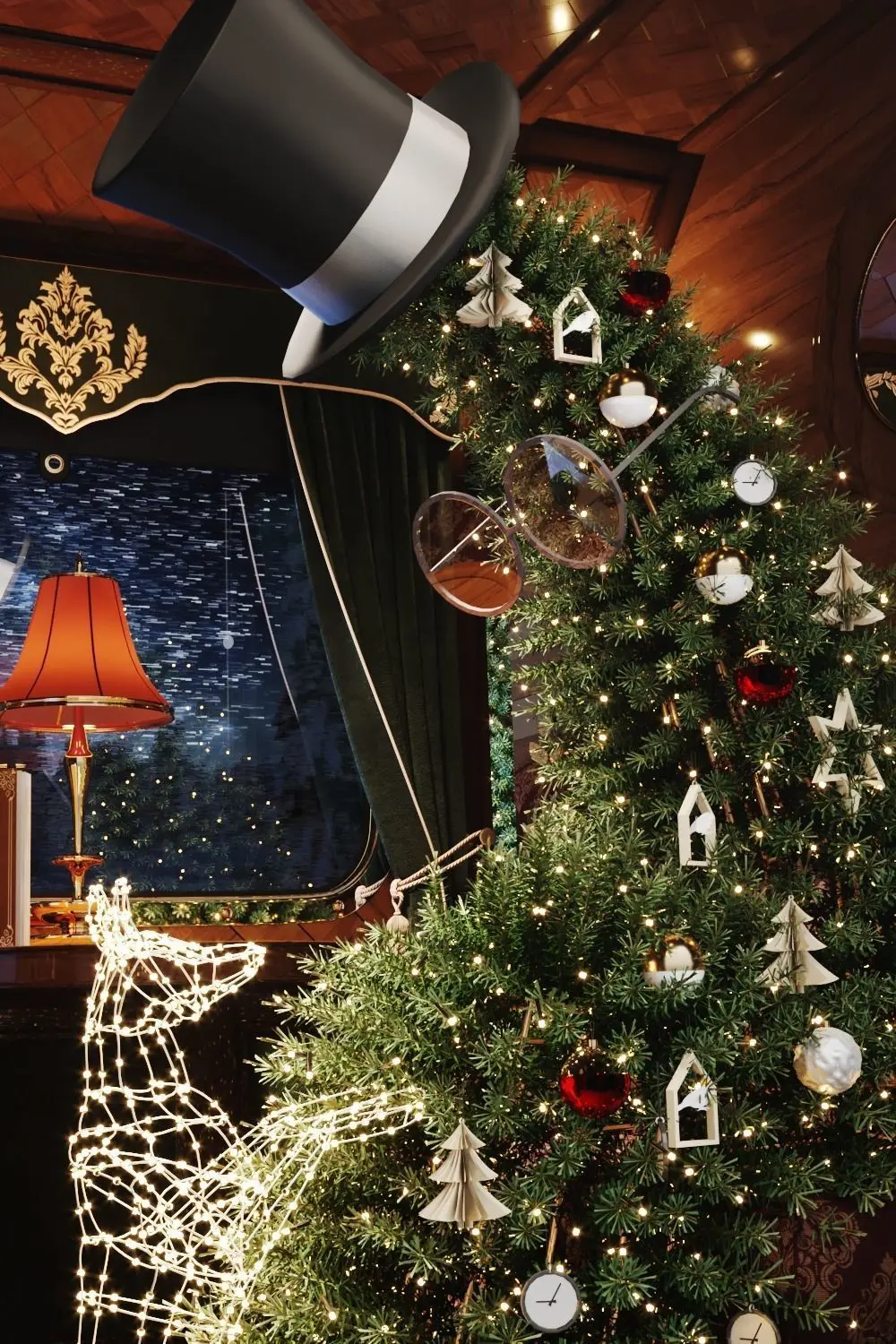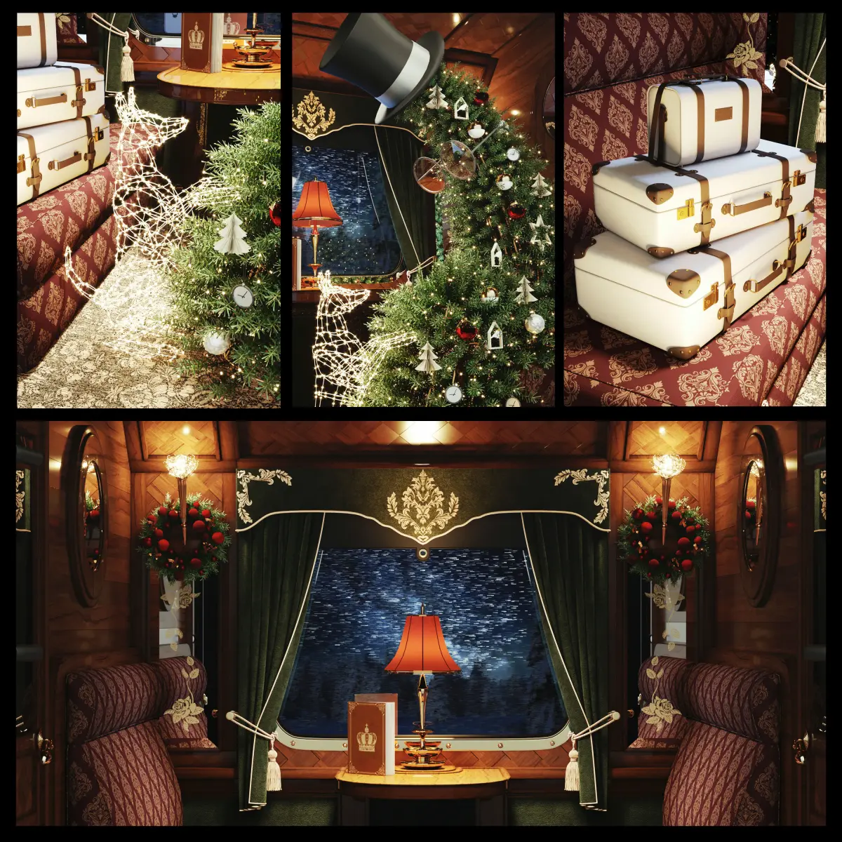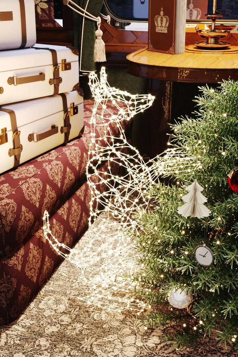 New Year or Christmas showcase for premium bags and suitcases. Made in classic English style.