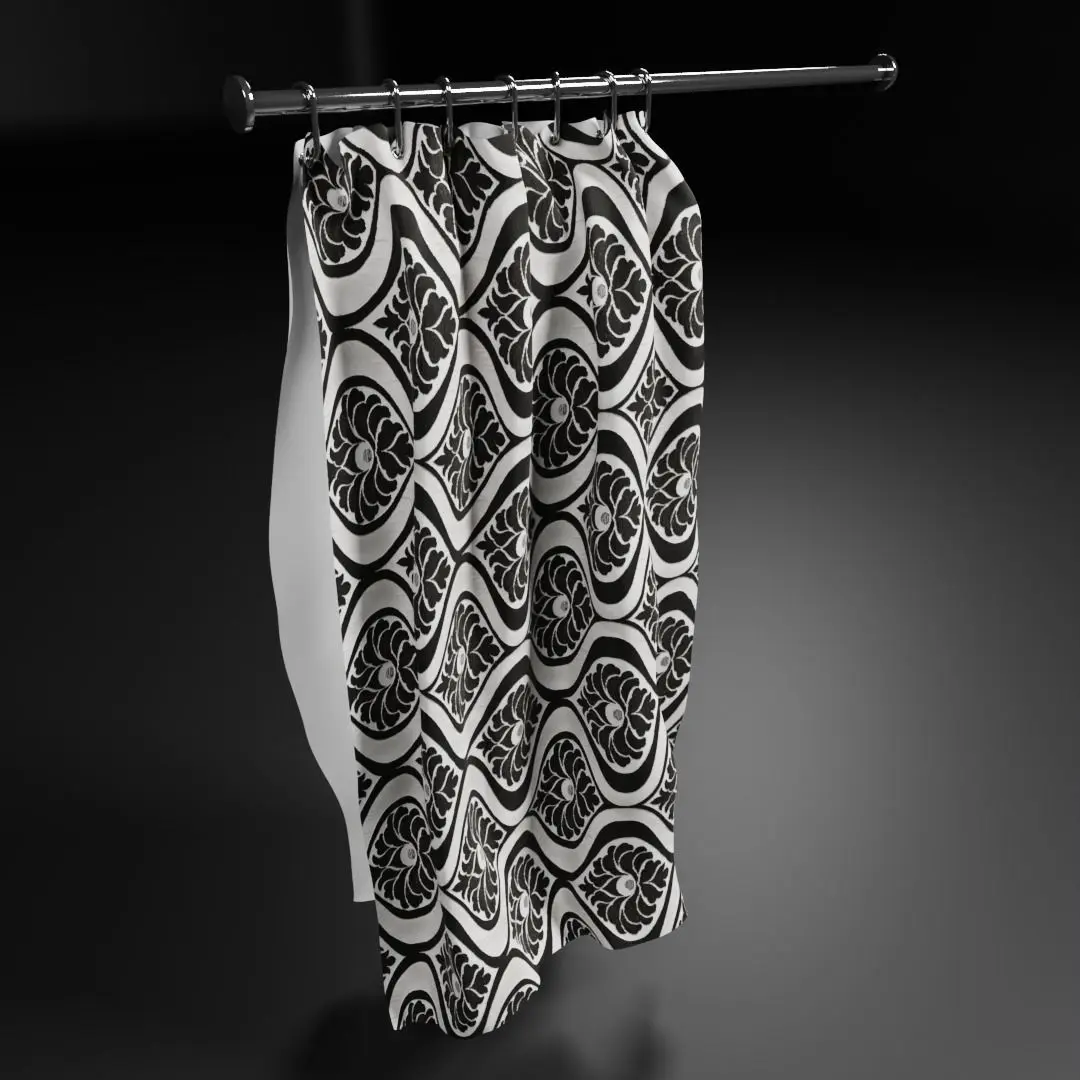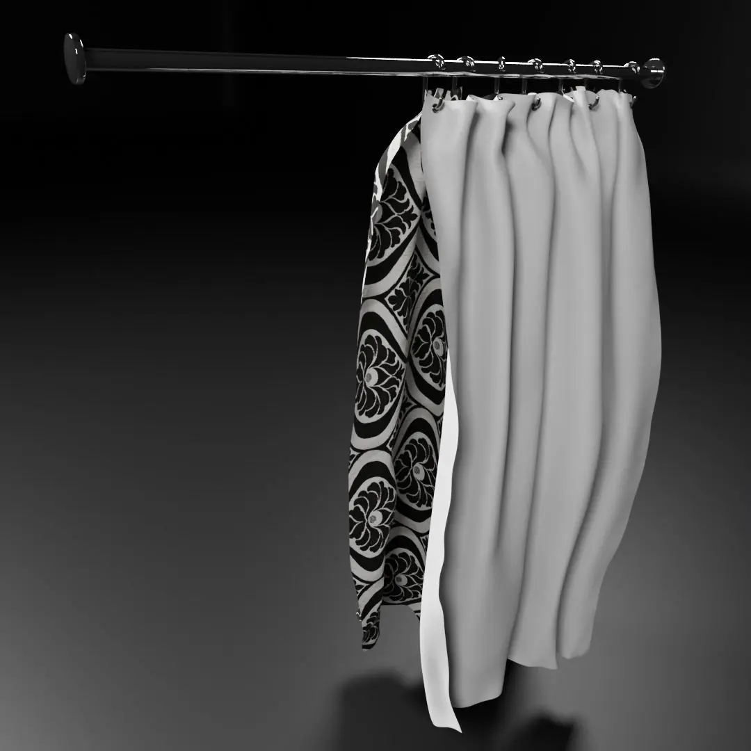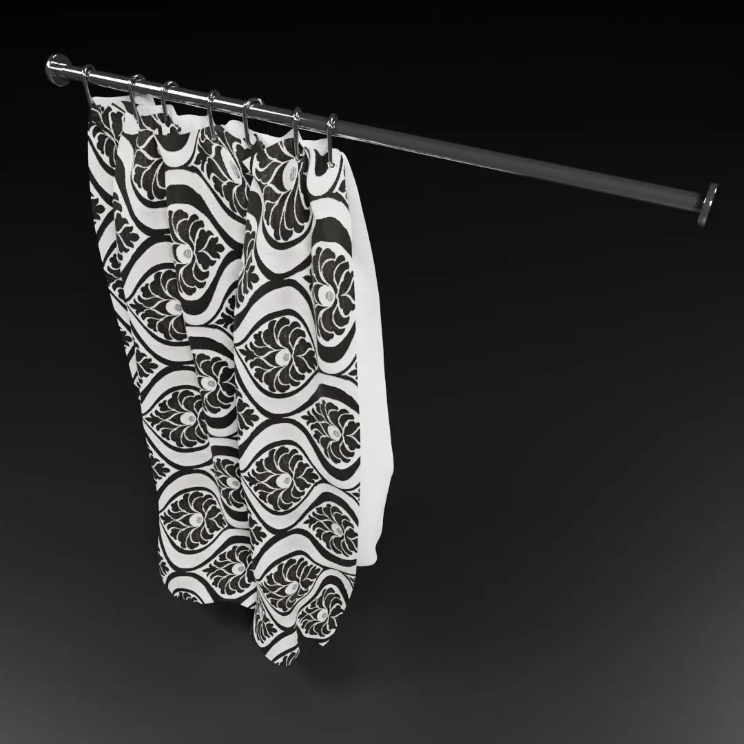 Shower curtain for decoration. Free fabric texture thanks to Chocofur. Bathtub is for reference and is not included.