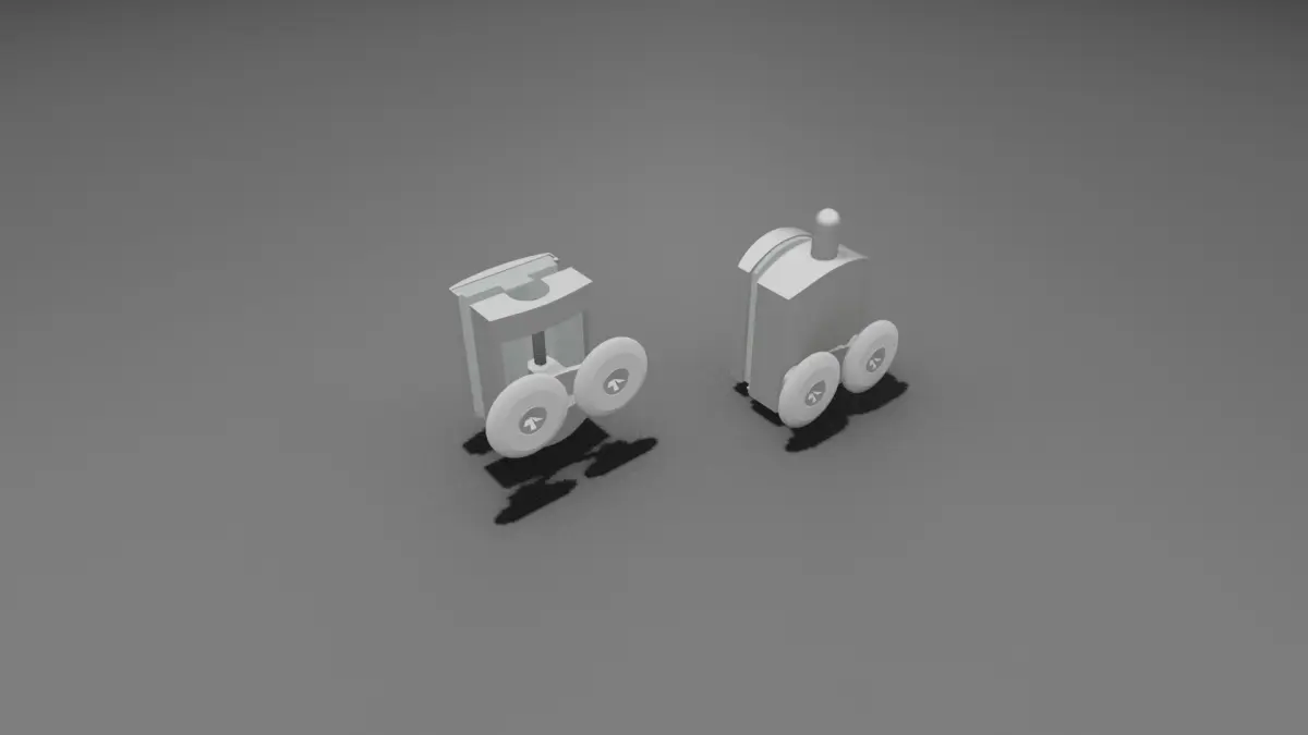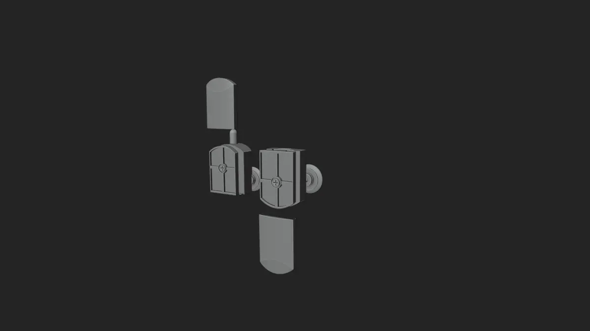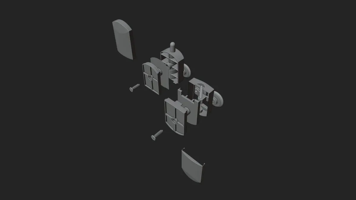 The shower cabin rollers have been modeled in Blender 3D, with the upper and lower parts modeled separately. Parts that need to move together have been parented to the main part. Additionally, an empty object has been used to allow for collective movement of the components.