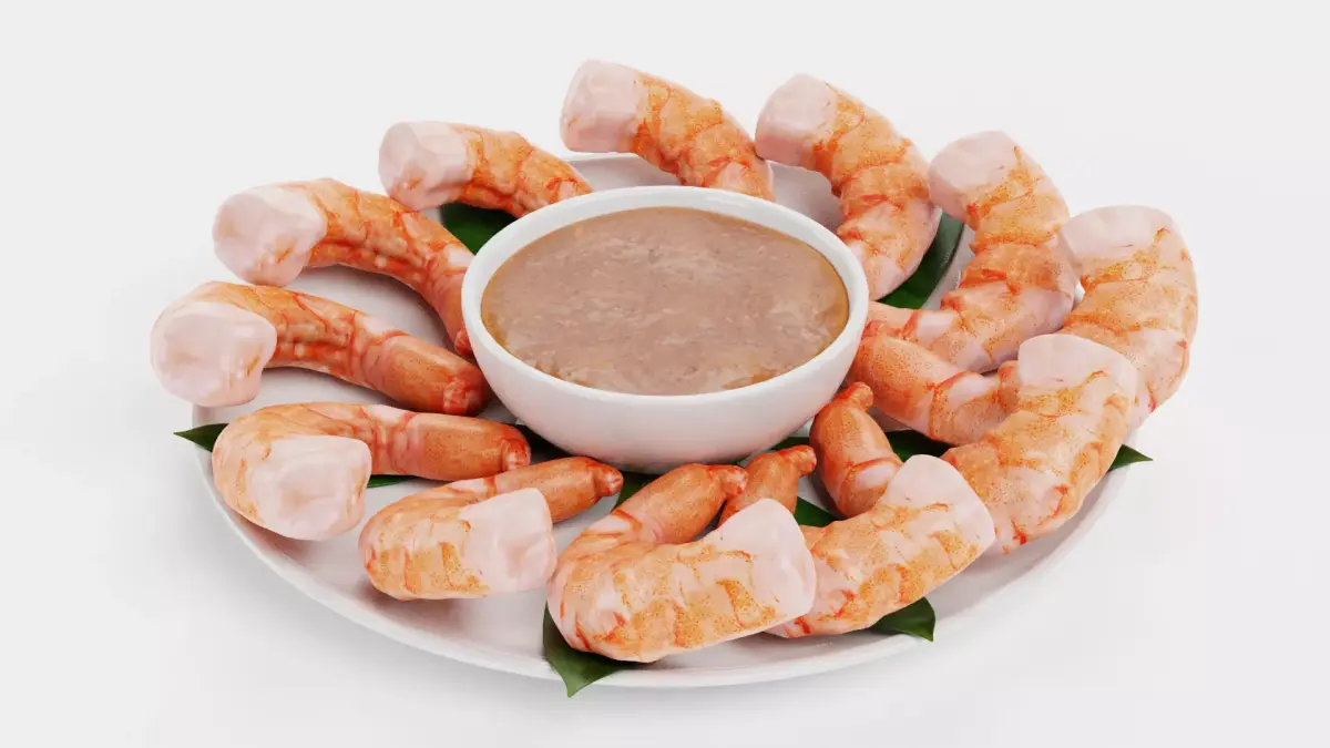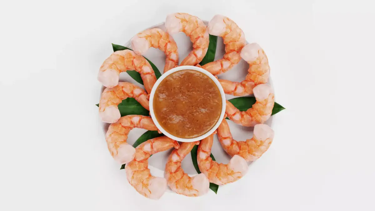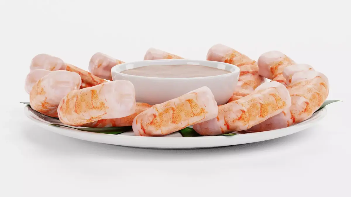 - Realistic shrimp bites arranged on a clean white plate