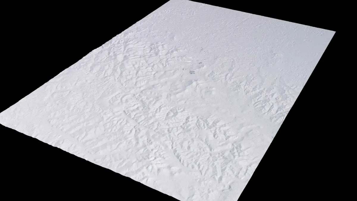 Originally created in Houdini 19. Final images rendered in Houdini. Data source is ASTER GDEM V3, ASTER WATER V1, Open Streep Maps 2022, Copernicus Sentinel 2016.