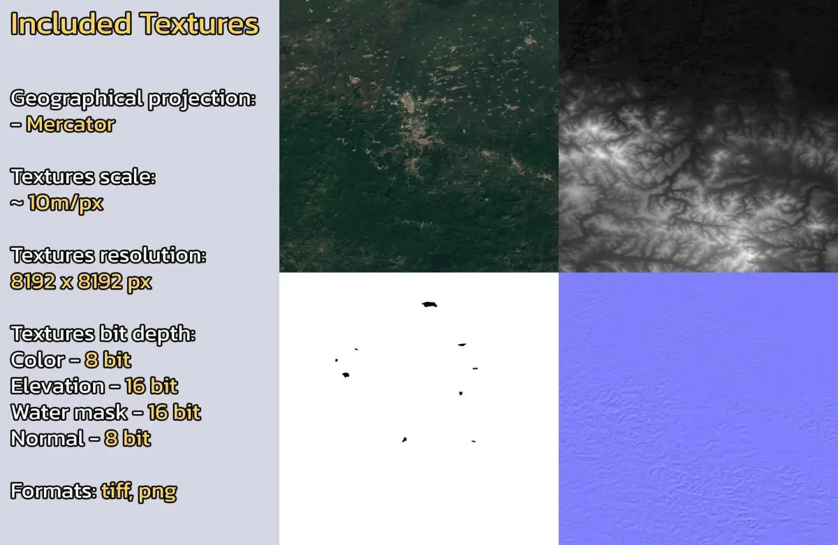 - Textures resolution: ~10m/px