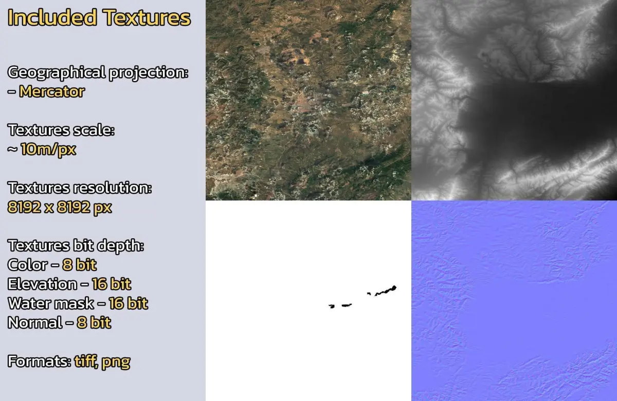 Warning: minor clouds/artifacts may be present on the diffuse color satellite texture due to the nature of the dataset. Check product images.