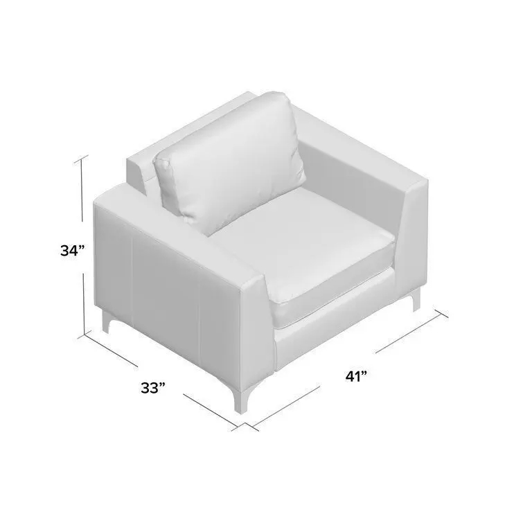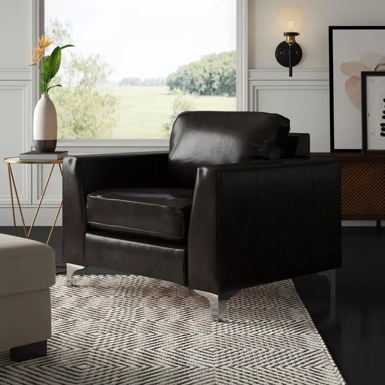 - Lend any arrangement a sleek and streamlined spare seat with this classic club chair. With a frame crafted from manufactured wood, and metal– chrome finished legs, this piece features square arms, and removable seat and back cushions. In neutral hues, this chair can blend well with any colour palette in modern or contemporary aesthetics. Upholstered with leather and filled with foam, this piece measures 34' ' H x 41' ' W x 33' ' D.
