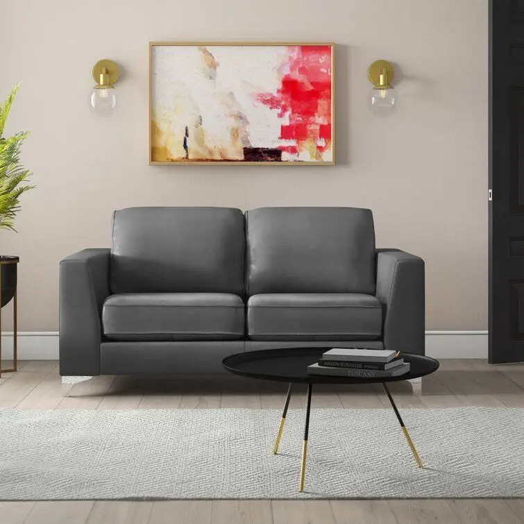 - From the days of cereal and Saturday morning cartoons to the years of beers and Sunday night football, we spend a lot of time on our living room sofas. Take this Loveseat for example: Showcasing a neutral finish, its foam-filled leather upholstery effortlessly blends with your existing decor.