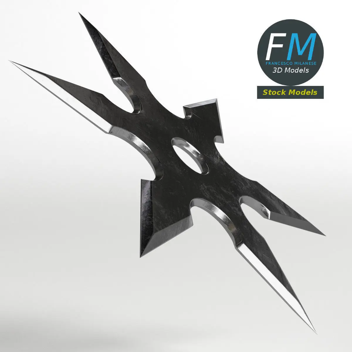Shuriken ninja star 3D Model. Production-ready 3D Model, with PBR materials, textures, non overlapping UV Layout map provided in the package.