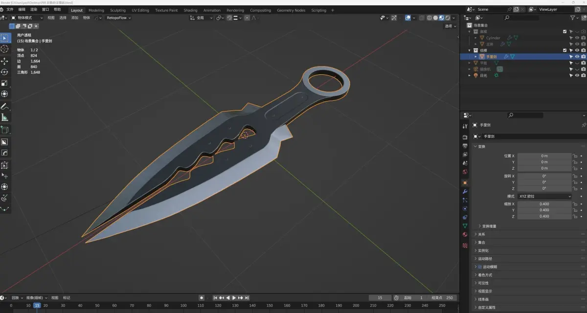 Shuriken and sleeve arrow PBR models, modeled in Blender, with low-poly baked texture displayed in the images. Blender also includes a high-poly model, rendered using Cycles. 4K textures were painted in Substance Painter and exported as FBX, a universal format.