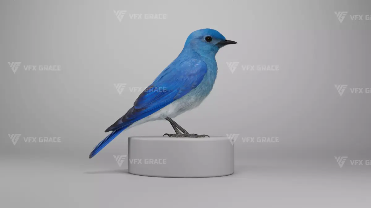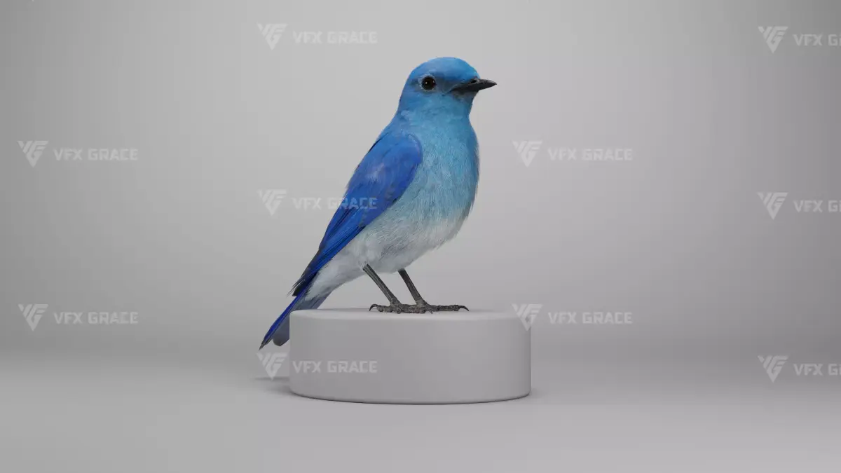 This is a high-quality mountain bluebird model with maps, hair cards, rigging and four vivid animations. The model has realistic muscle structures and 4K maps, and complex feather cars and textures made in Blender. The detailed rigging is available for flexible body movement control. This model is made with Blender and Cycles renderer at real-world scale.