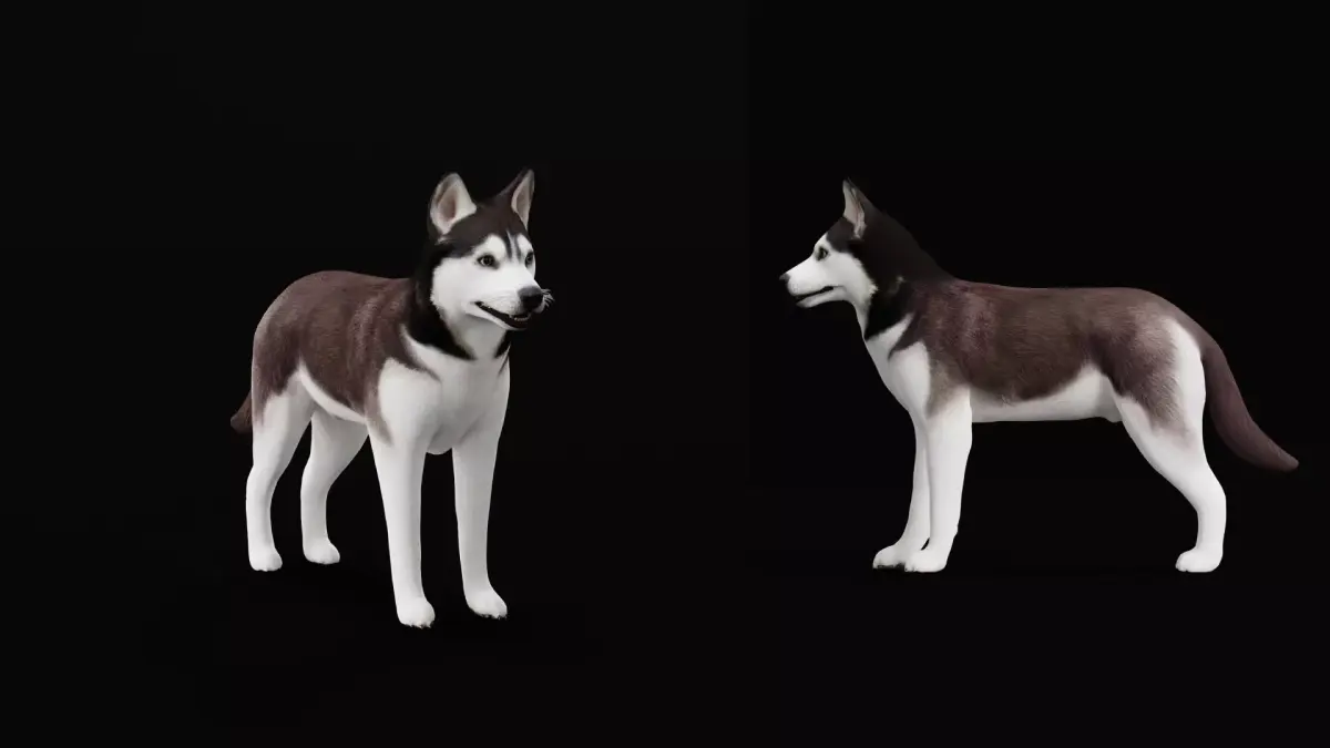 The Siberian Husky is a breed of medium-sized working sled dog. The breed belongs to the Spitz genetic family. It is recognizable by its thickly furred double coat, erect triangular ears, and distinctive markings, and is smaller than the similar-looking Alaskan Malamute. .3D Siberian Husky Asian Dog Realistic Animal Model By Nyilonelycompany (nyc).Thank you.