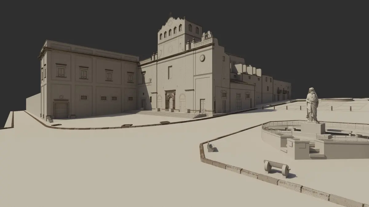 Urban corner located in the historic center of Sciacca in southern Sicily. Buildings modeled on the basis of Street View using Sketchup. The square is slightly inclined, reflecting the character of a mountain town.