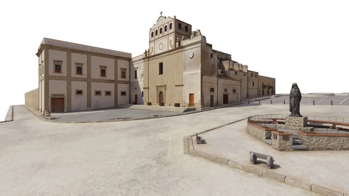 Based on the existing church - Chiesa Santa Maria dell'Itria (Badia Grande)https://www.google.com/maps/@37.50988,13.0850423,3a,75y,347h,91.72t/data=!3m6!1e1!3m4!1sZgxbGK85-jjGbFSDt29RIQ!2e0!7i16384!8i8192