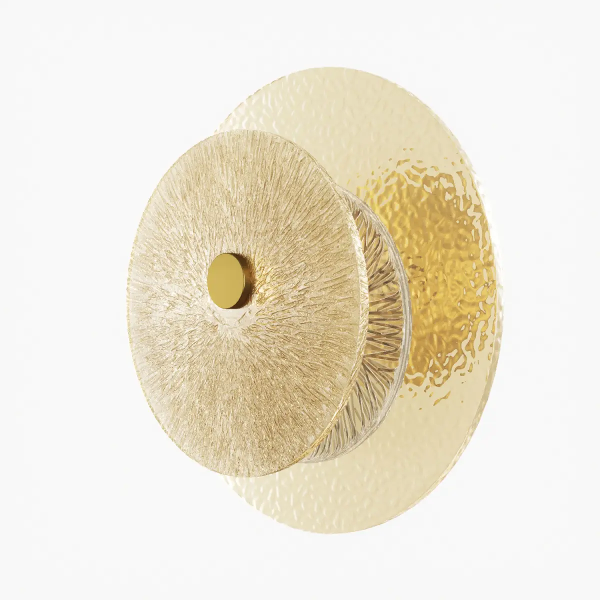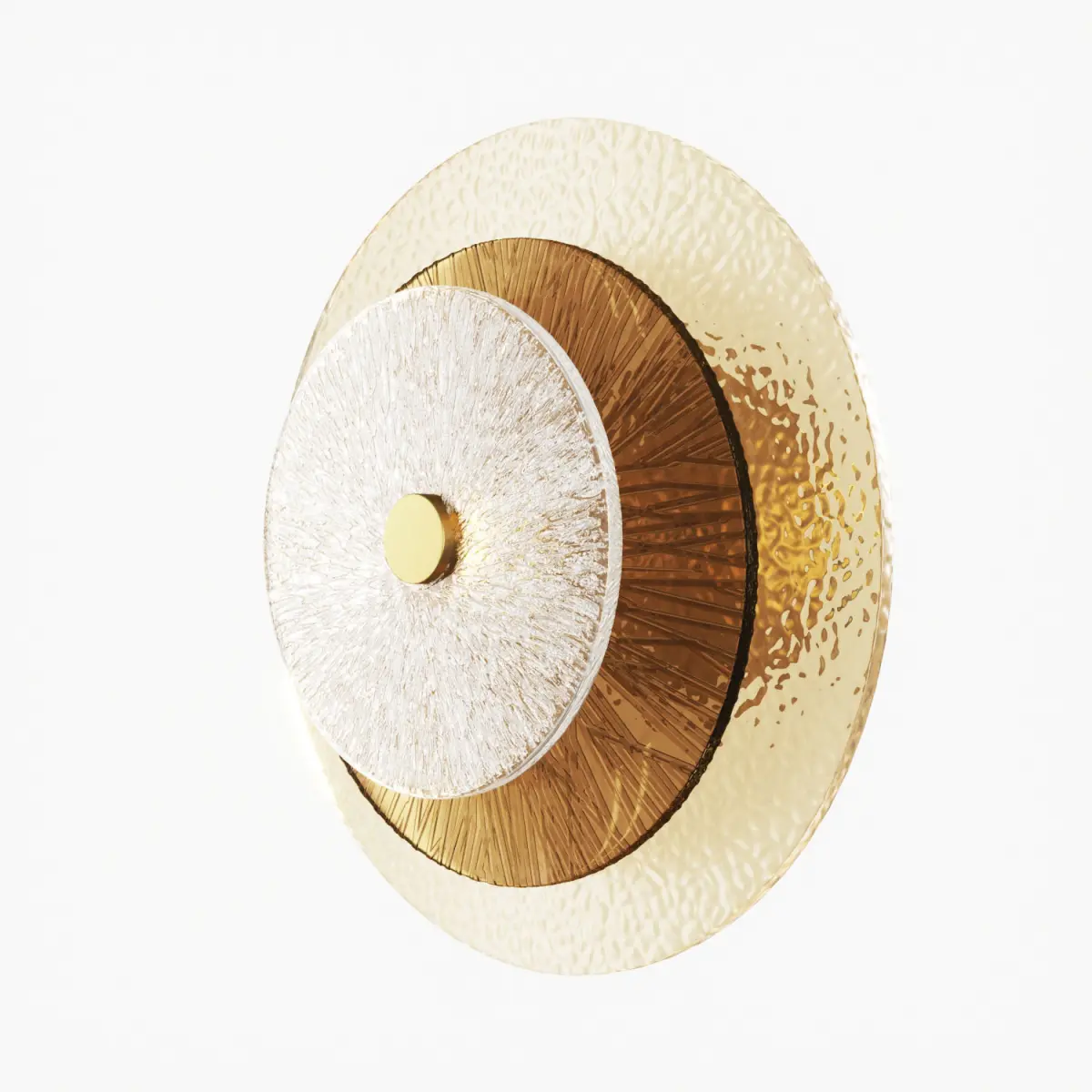 Wall lamp in brass with champagne finish. Decorative glass in three different bronzed or smoked finishes.