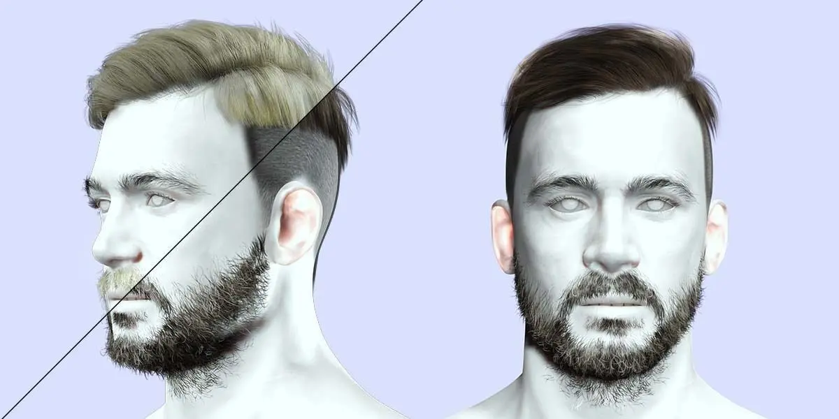 Side Part Man Hair Style - Beard - Mustache Low-poly 3D model
