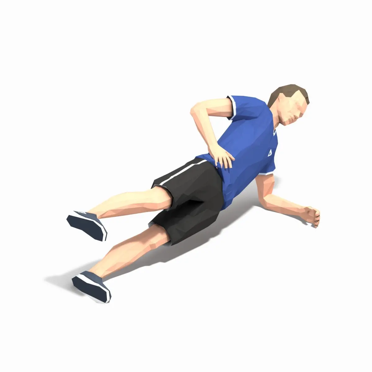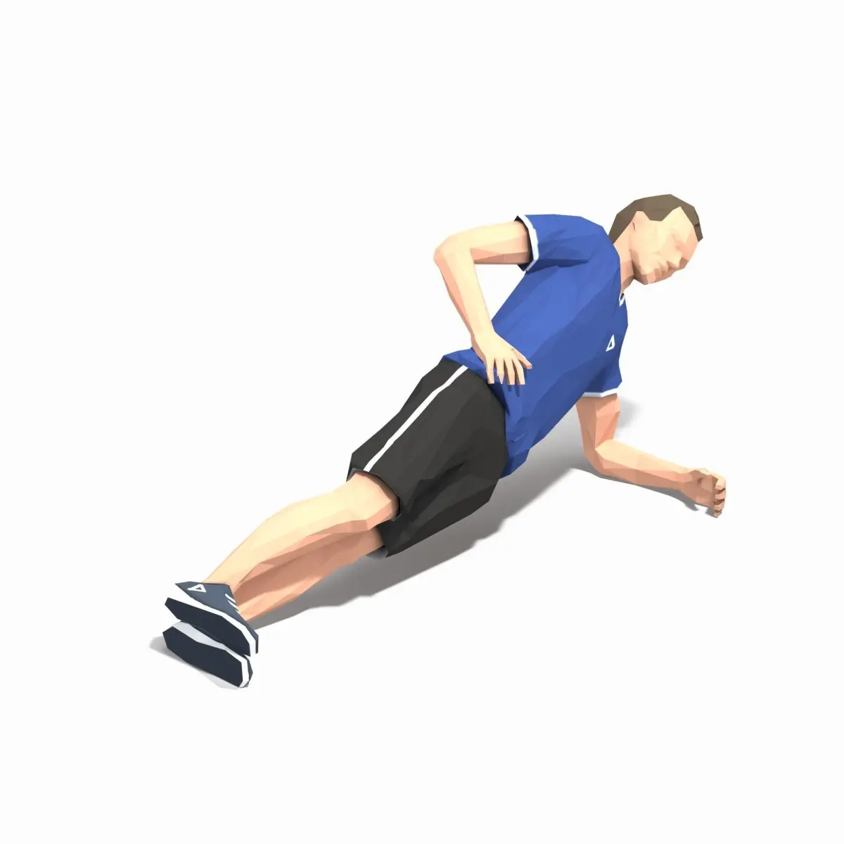 Animations of exercise Man Low poly3d model in flat surface style.Animation created in CAT system and exported to FBX files for loop sequence.Extra textures as bonus