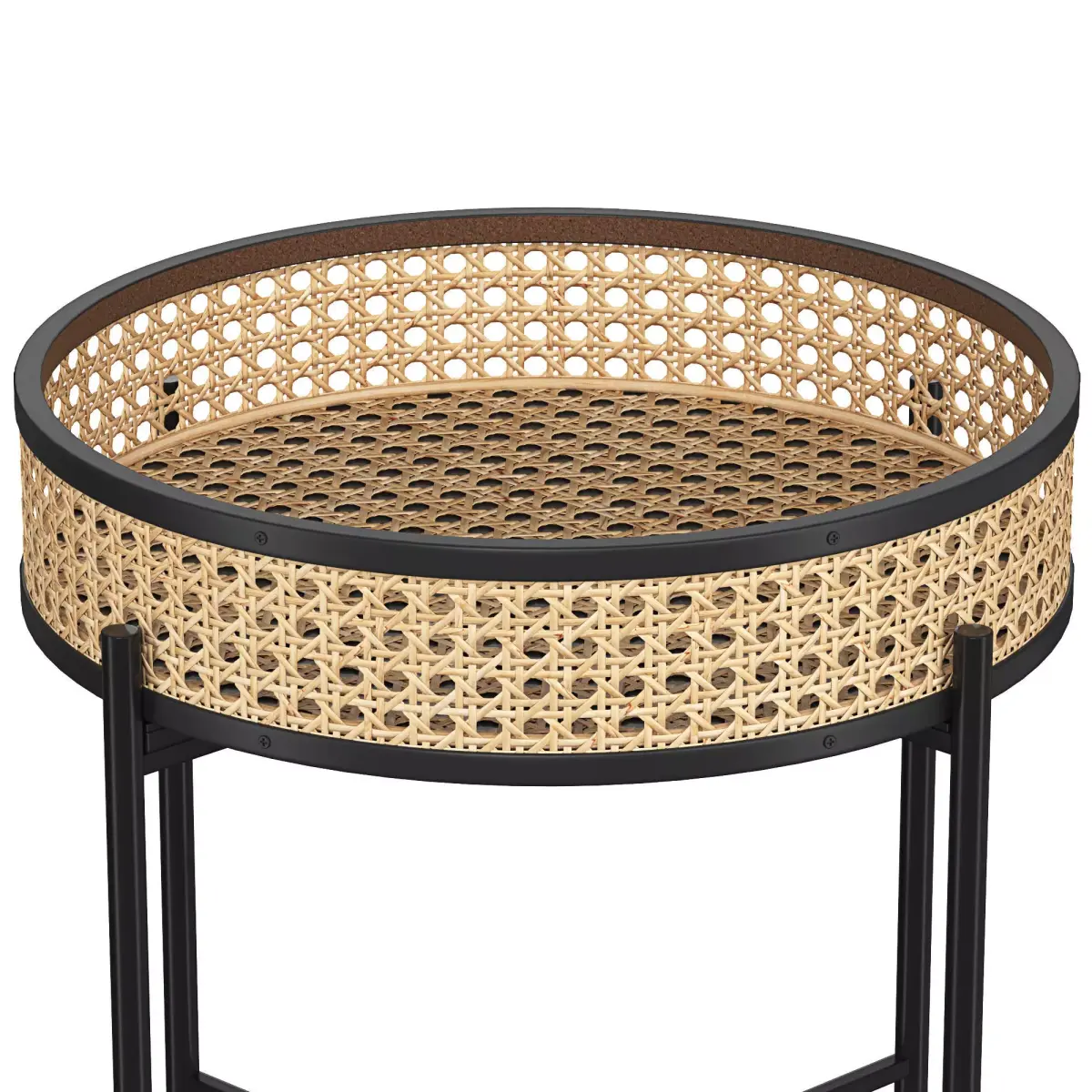 Side table with a detachable serving tray.