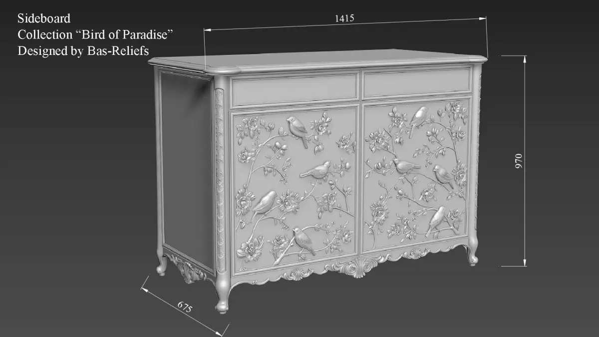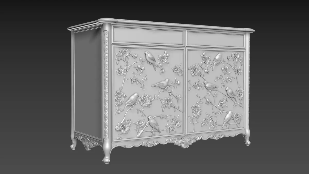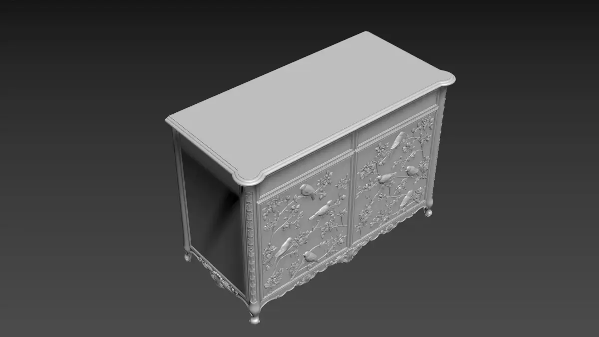 The archive contains files in STL and OBJ formats, only the external parts that you see in the preview with dimensions ( separately: side, legs, front part, top) The archive does not include parts inside the product such as the building part, drawers inside, fastenings, etc.