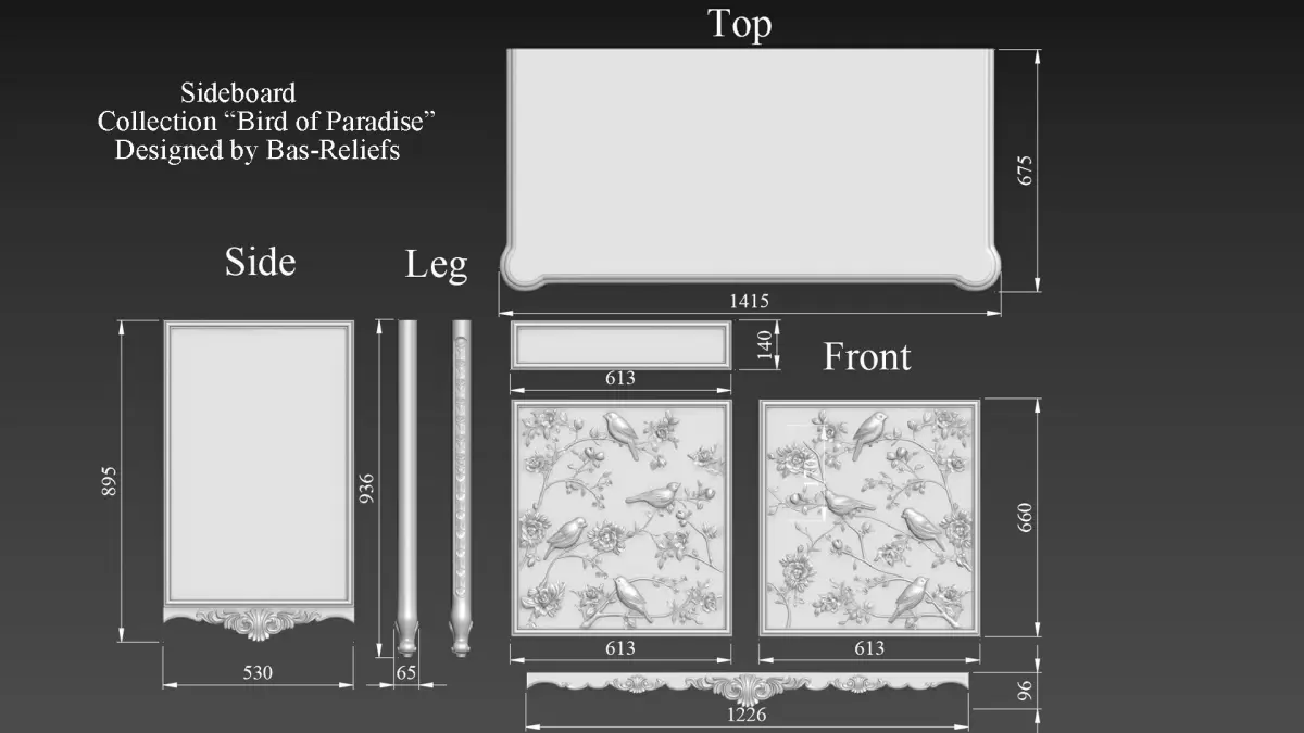 Model has a native size shown below but can also be scaled up or down inside your software. General dimensions of the product after manufacture: 1415x675x970mm. See the preview for dimensions of individual parts.