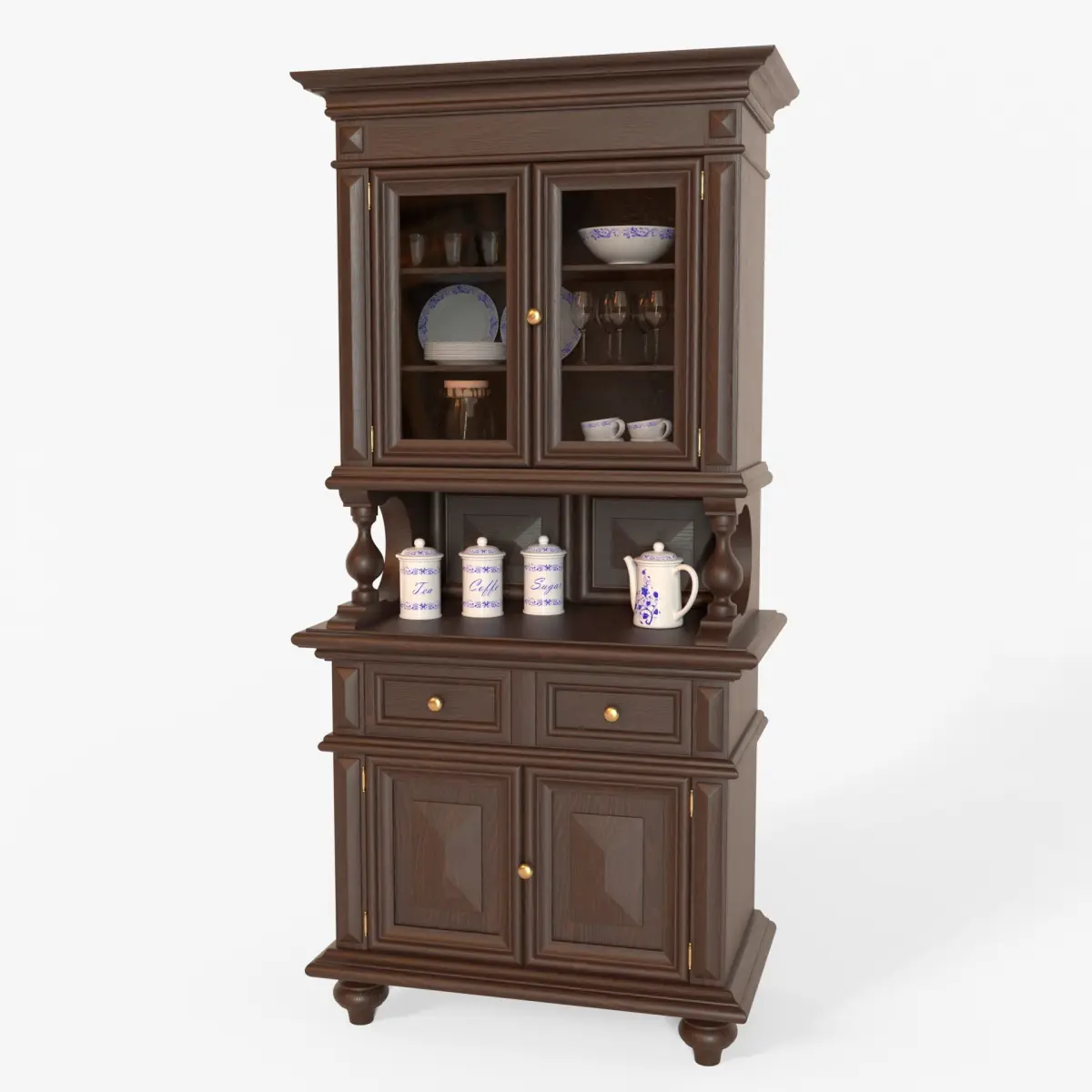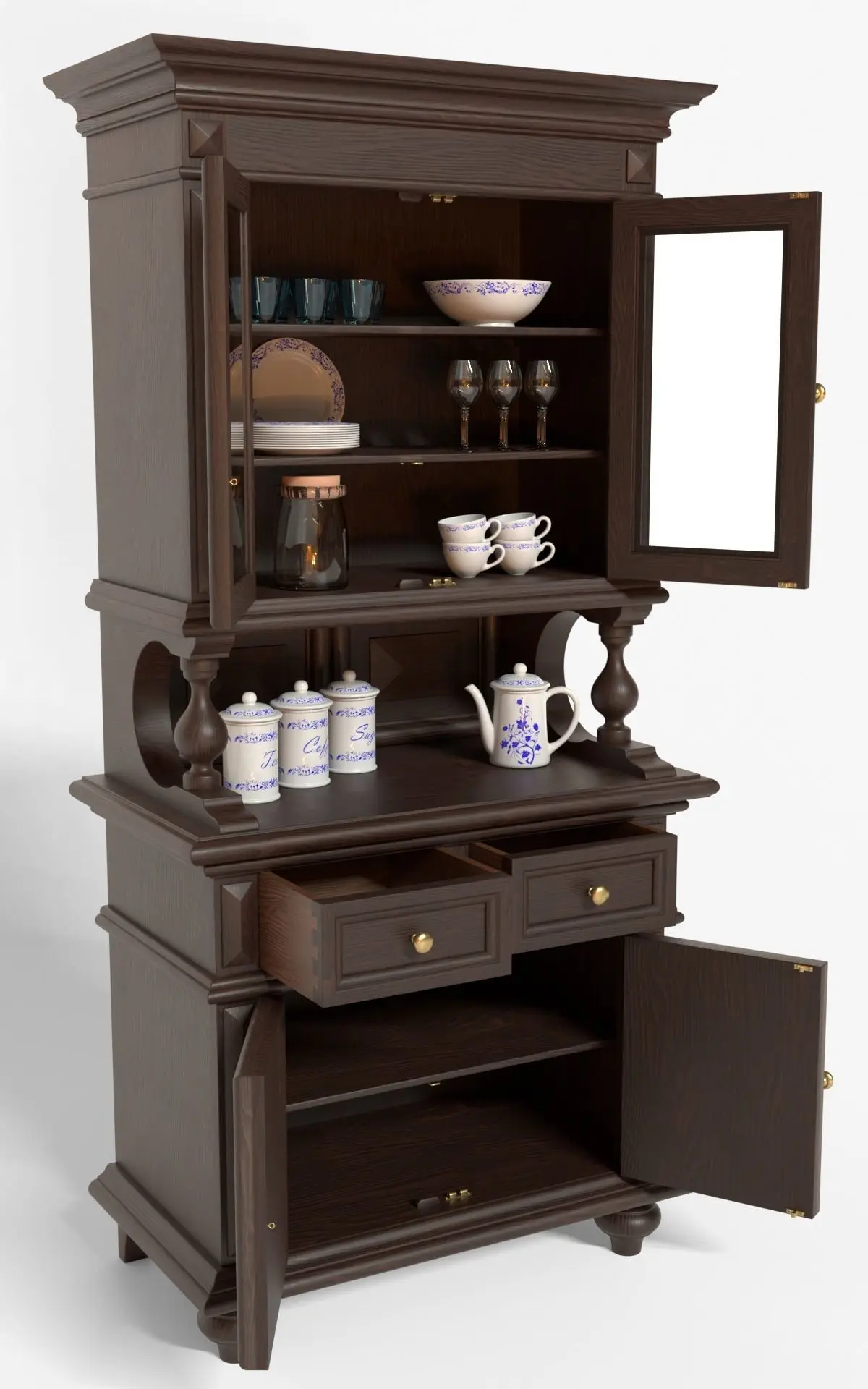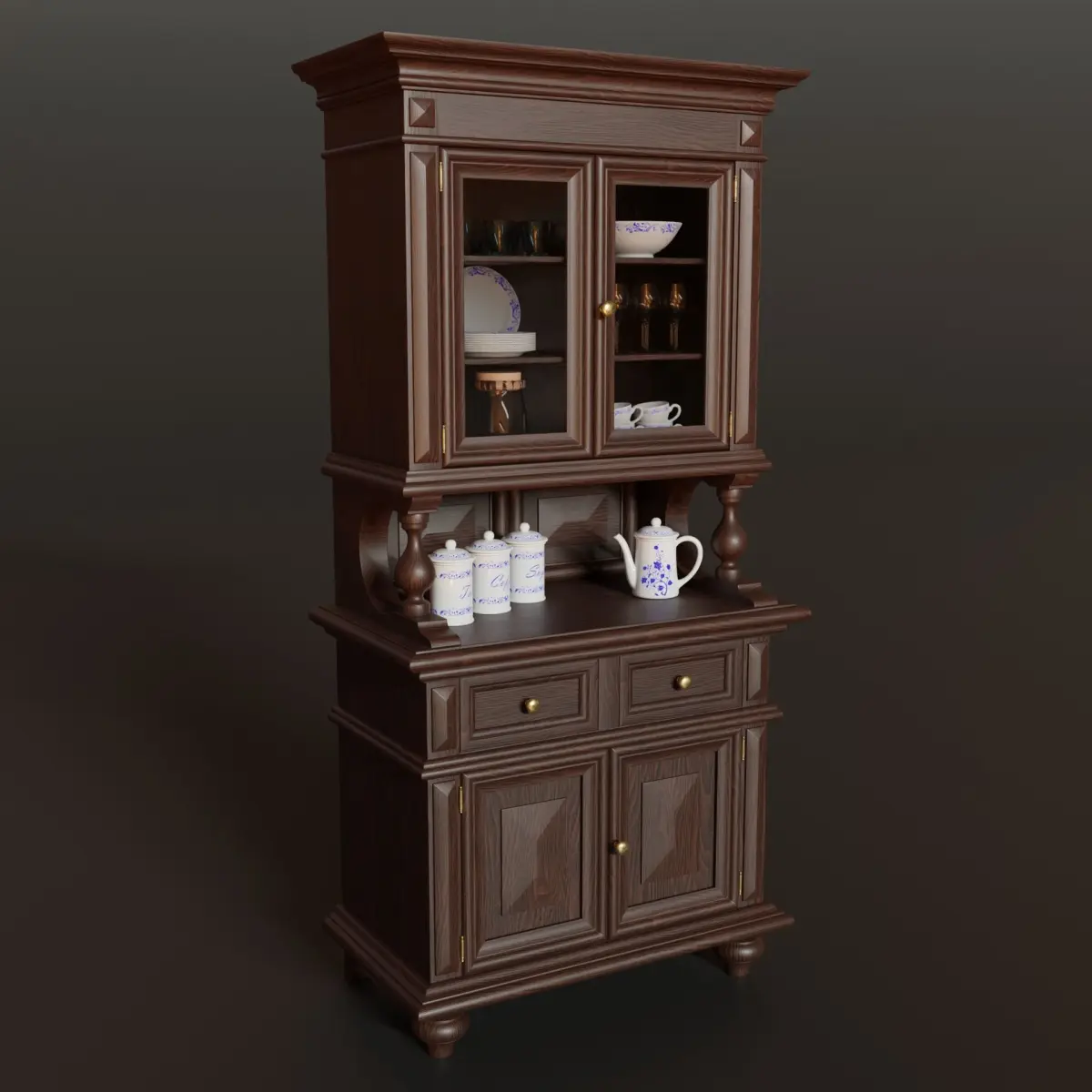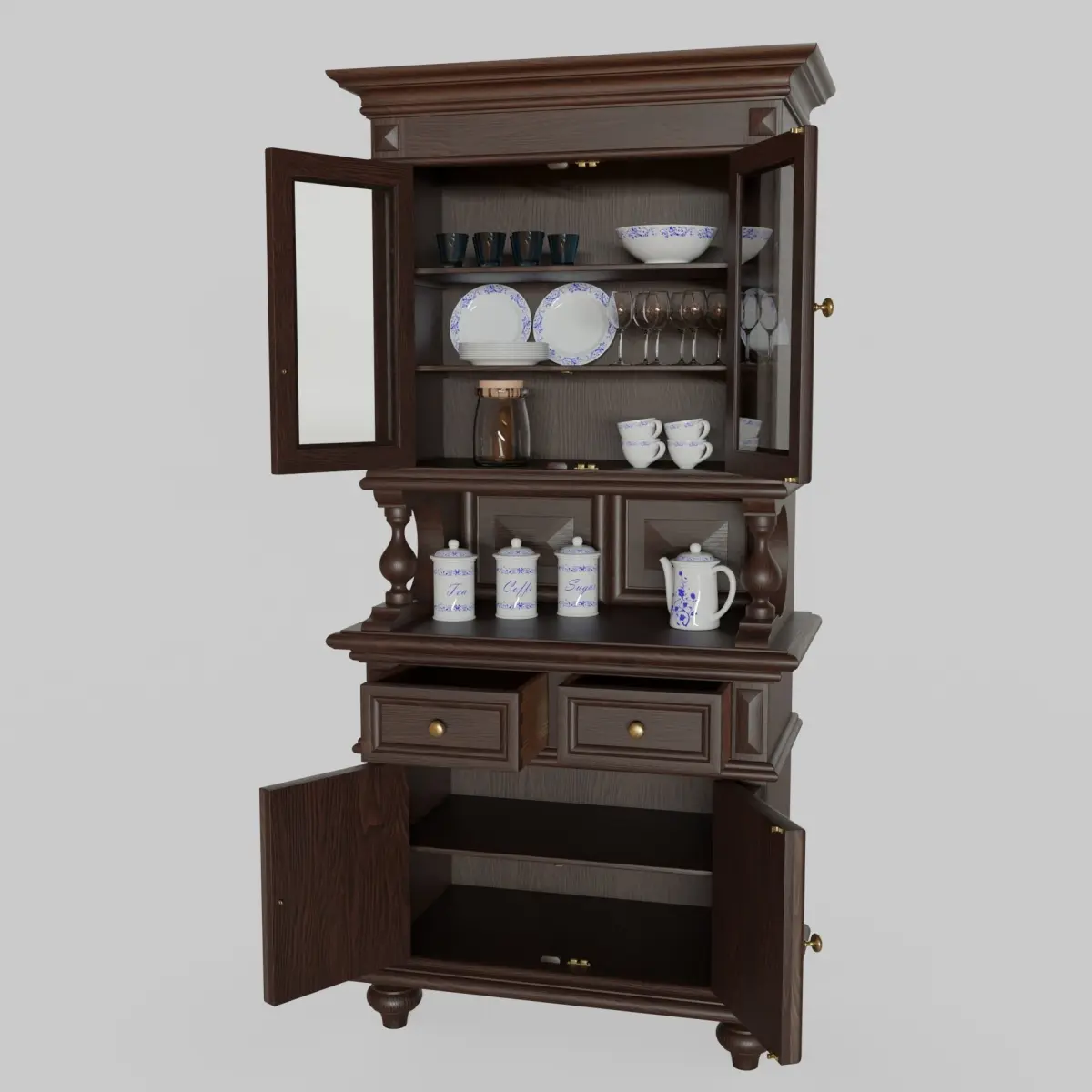 - The sideboard is supplied with closed doors and drawers. To be able to open them it is necessary to edit them directly in Edit Mode.