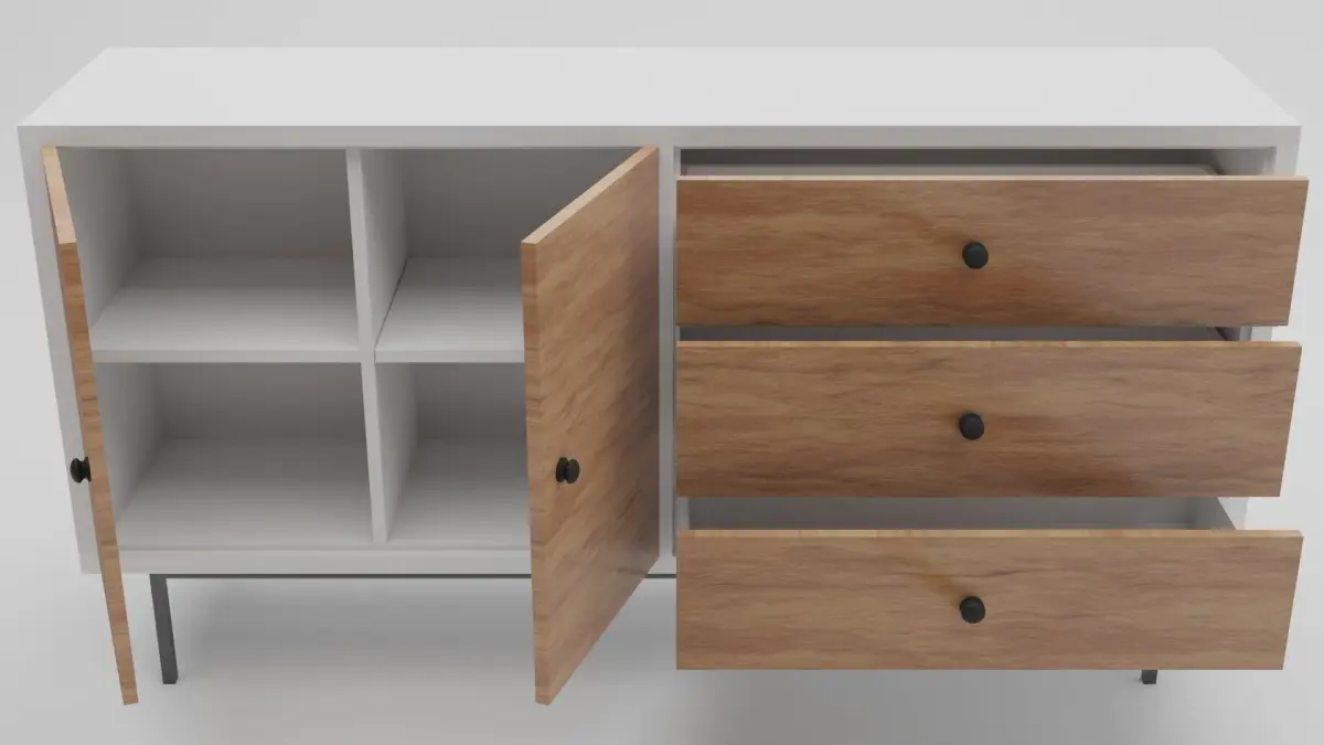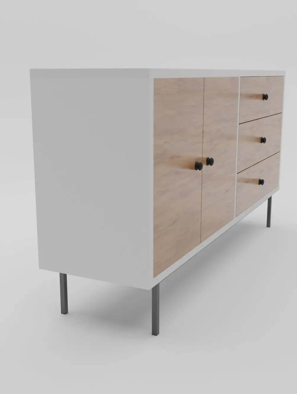 This is a wooden cabinet with plane wooden materialand white coloured wood.after download you will get three zip file one with textures second with previews and third with file formats.