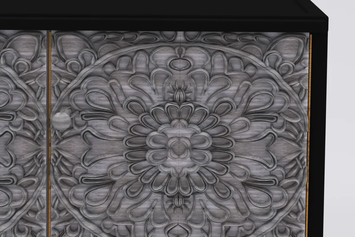 This is the same model of my prevous model with Mandala decorations, but now I have changed the mandalas with doors sculpted. I have used a plug-in for sculpting the doors. The plug-in is Polydesign, a very useful and simply plug-in but with a lot of options and it work in every version of 3ds Max. This model has another two PBR textures if someone want change the wood of the doors and the sculp.