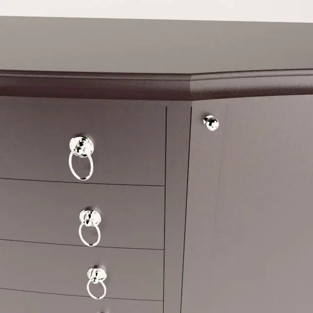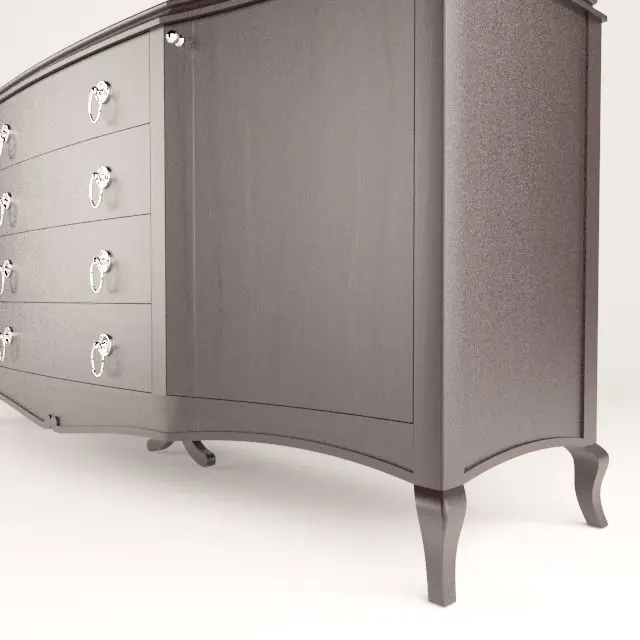 Sideboard with 2 doors and 4 drawers Decò stile.Size cm 200 x 60, high 96.Polished in ebony color with chrome hardware.Chrome handles.All parts and dimensions are exactly like in the real world and the veneer of wood is in the right direction.You can use the included textures but you can use also your Real-world scale textures.