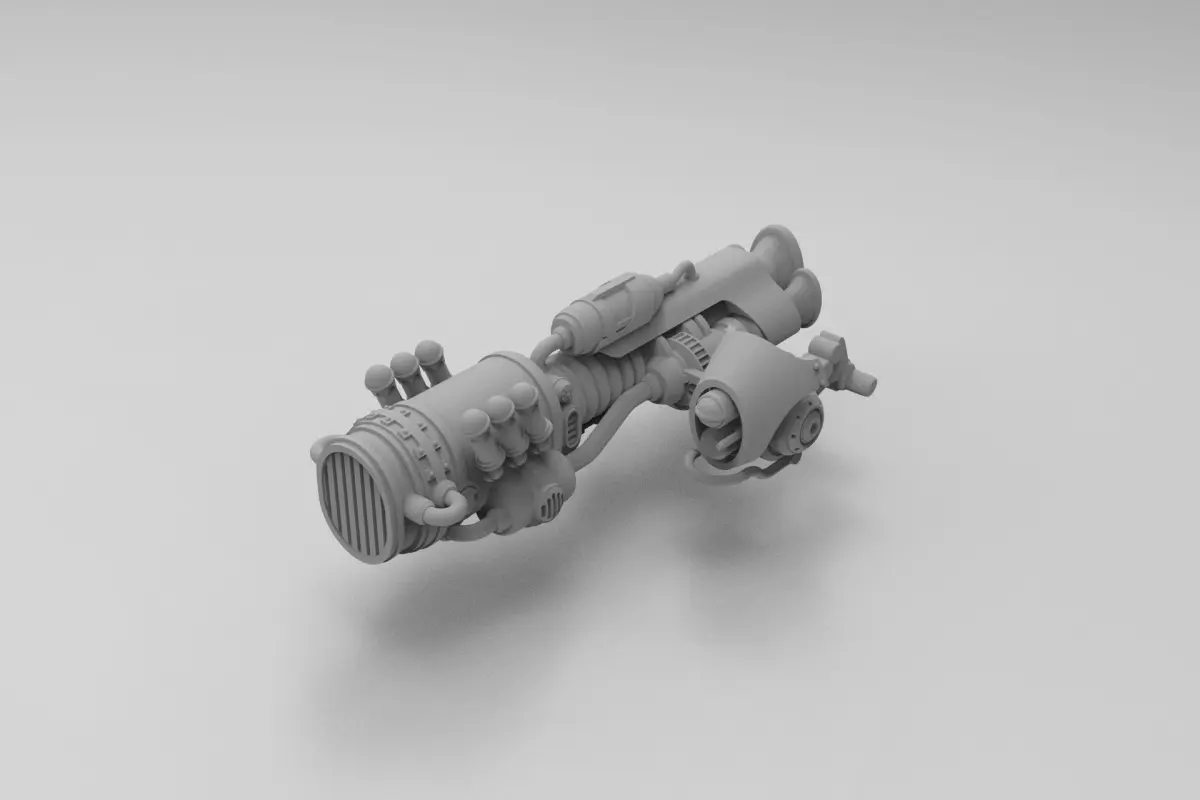 A jetbike with a massive sidemounted engine. Includes a version with a rider.