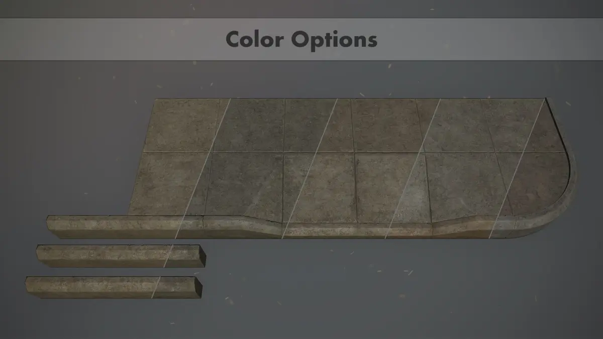 - This pack consists of modular set for combining sidewalk (21 separate meshes) saved in four different formats (.max, .obj, .fbx, tbscene) and five color options of textures.