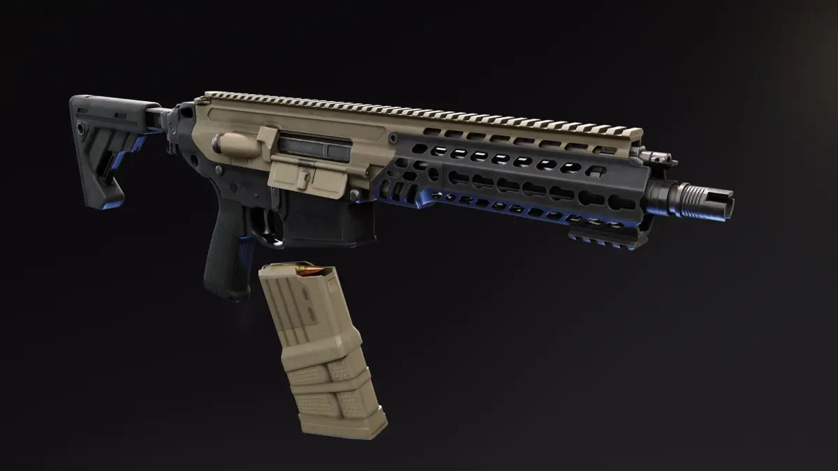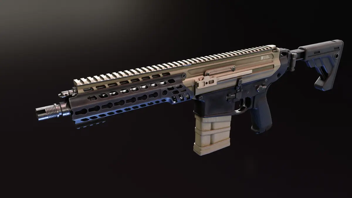 Model is rigged, it have 4 PBR materials in 4K. Black and metalic sig FDE colors are included.