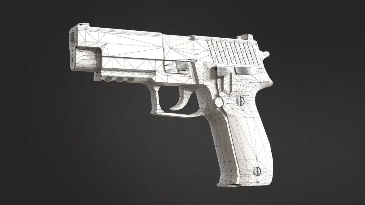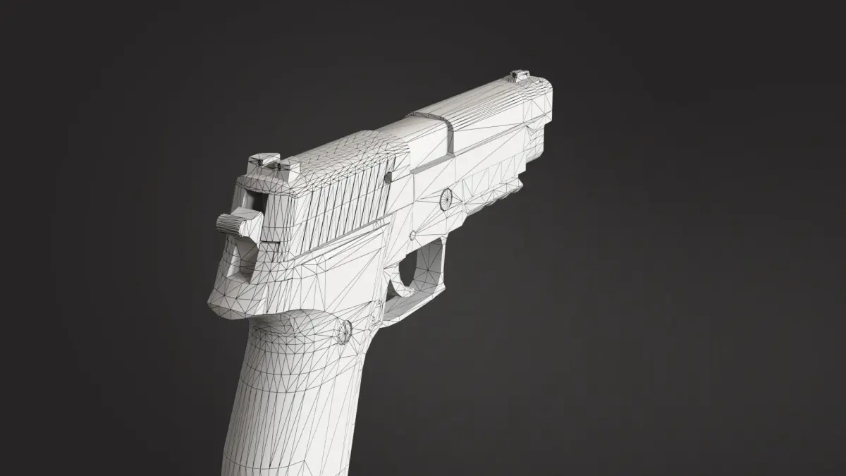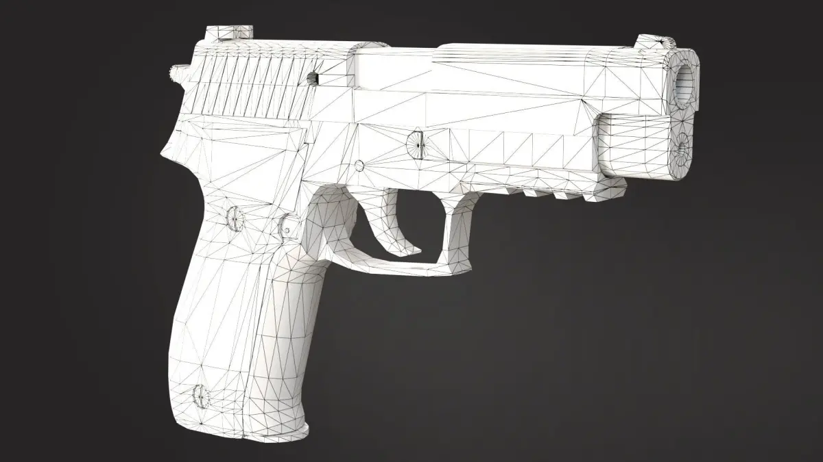 Package contains one Sig Sauer P226 gun model which is saved in four formats. First one is standard FBX file, second OBJ, third Unitypackage and fourth is a blender file.