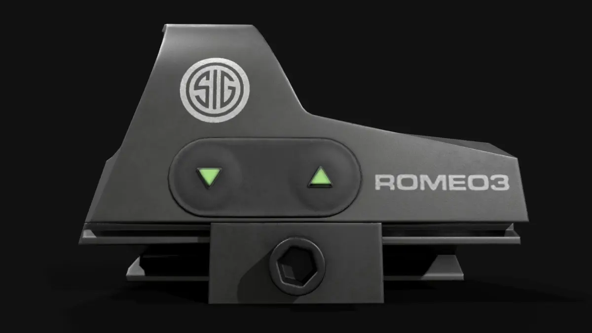 Game ready models of a Sig Sauer Romeo3 Miniture Reflex Sight with Short and Tall mounts.