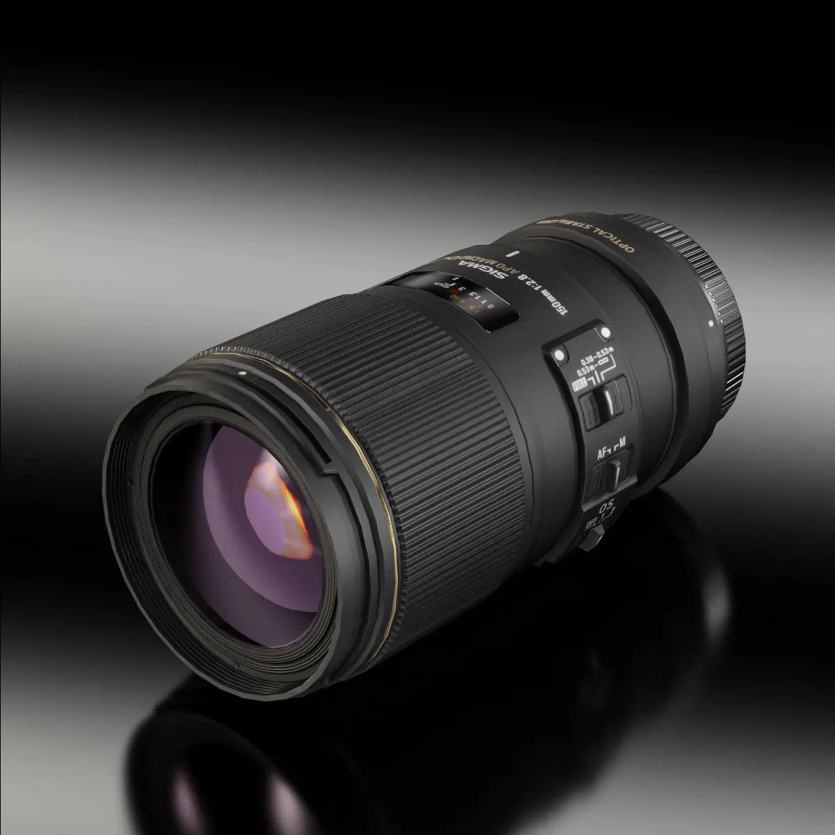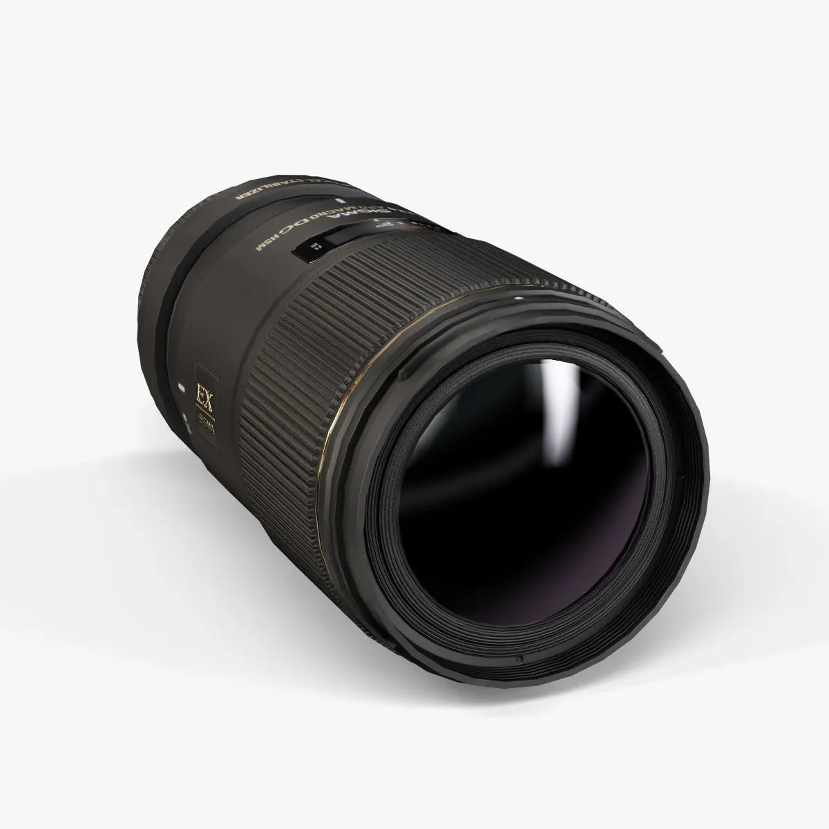 • Let me present to you high-quality low-poly 3D model Sigma 150mm 2.8 DG Apo Macro HSM Lens. This model can be used in various fields 3D Graphics such as game development, advertising, interior design, motion picture art, visualization, etc... Modeling was made with ortho-photos of real lens that is why all details of design are recreated most authentically.