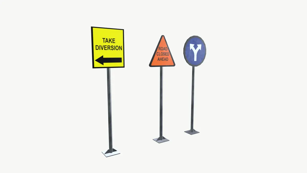 - Introducing our premium collection of Sign Boards, featuring three distinct types of road signs mounted on sturdy metal poles.