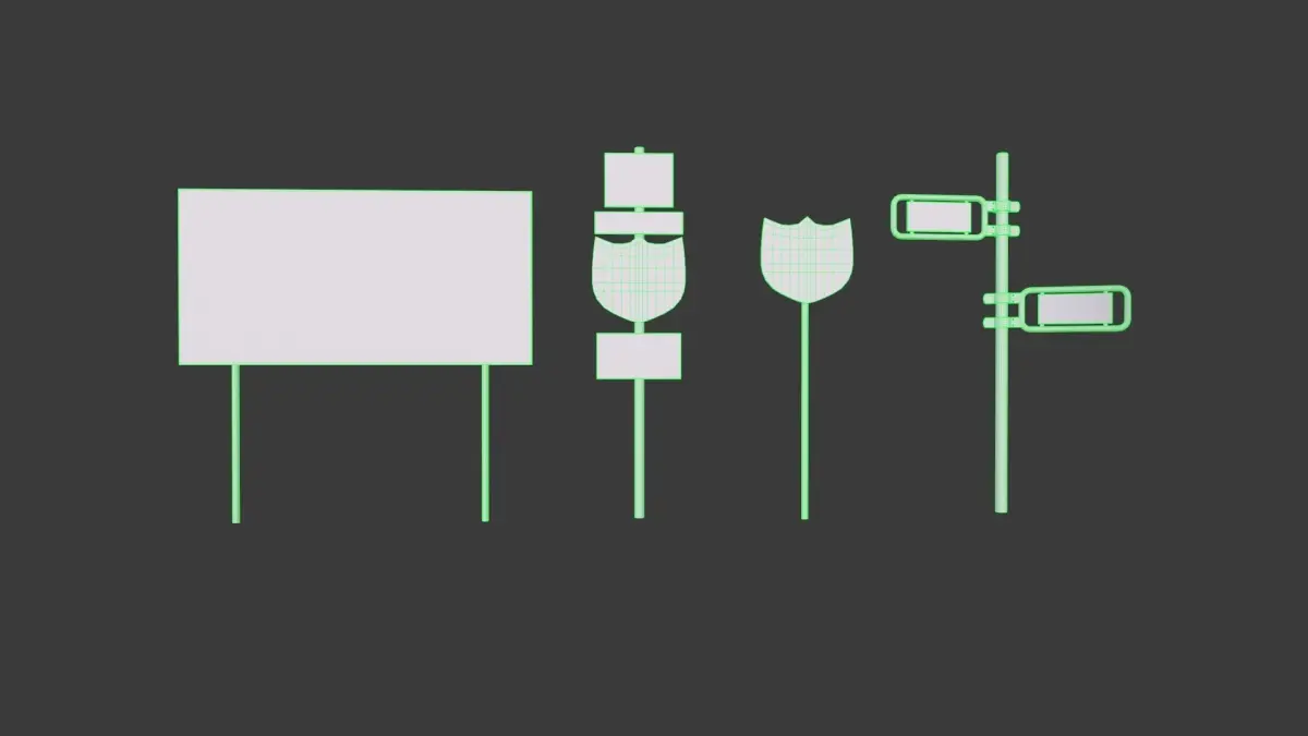 Sign boards Collection is a versatile set of 15 high quality, photo real models that will enhance detail and realism to any of your rendering projects.