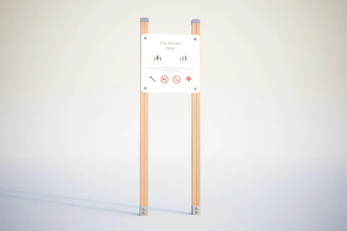 This simply 3D model includes information sign placed on a structure composed of two wooden posts.Model prepared for 3d architectural visualisations and other graphic works.