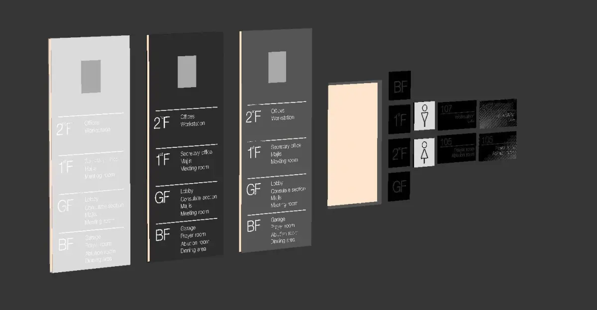 Our editable 3D model interior scene is compatible with 3ds Max and rendered with Corona Renderer, ensuring high-quality renders and seamless integration into your workflow.Textures and materials are included, allowing for effortless customization and rendering.Elevate your interior space with our signage design 3D model interior scene. Whether you're looking to enhance your brand presence, improve navigation, or simply add visual interest to your environment, our versatile asset offers the perfect solution for achieving your signage design goals.