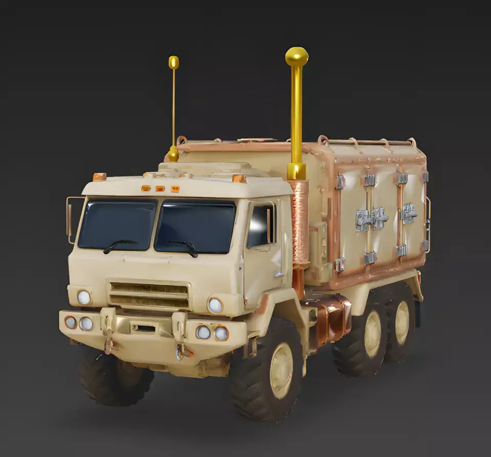 Files Included: FBX, GLB, OBJ, STL, ZIP (Textures).Quick Tip: The Communications Shelter and Antennas are separate mesh groups. You can easily remove the rear box to convert the asset into a standard flatbed military truck, or add a Pulsing Glow effect to the golden antenna tip to show when the signal is active.