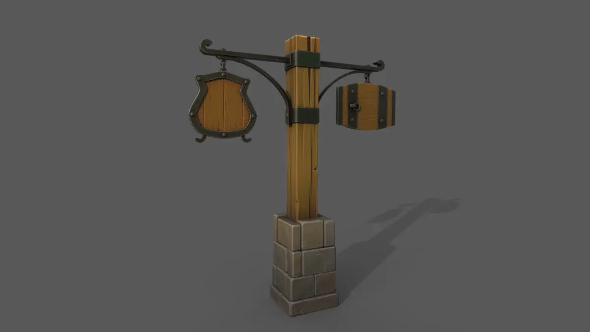 The 3D Model Pack Signboards is designed specifically for use in medieval-style game projects. The package includes four variations of signboard models. All models are low-poly and optimized for modern game engines, ensuring stable performance and visual appeal.