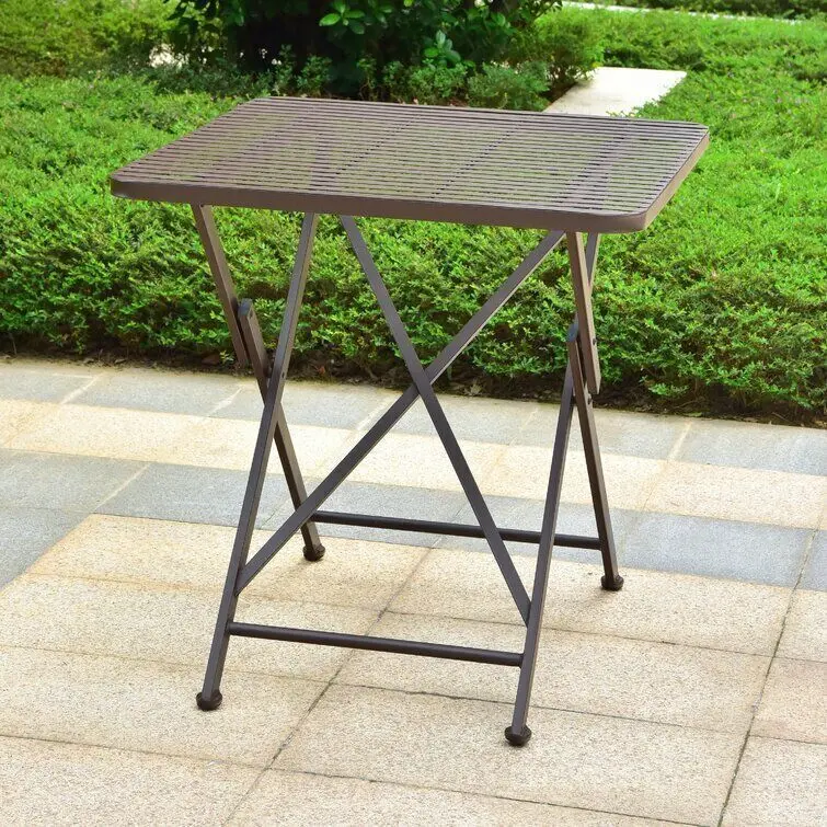 - This Signe Contemporary Folding Iron Bistro Table folds for easy carry and storage. Perfect for indoor and outdoor use, and designed with a thick powder coated outdoor and UV light fading layer of protection.