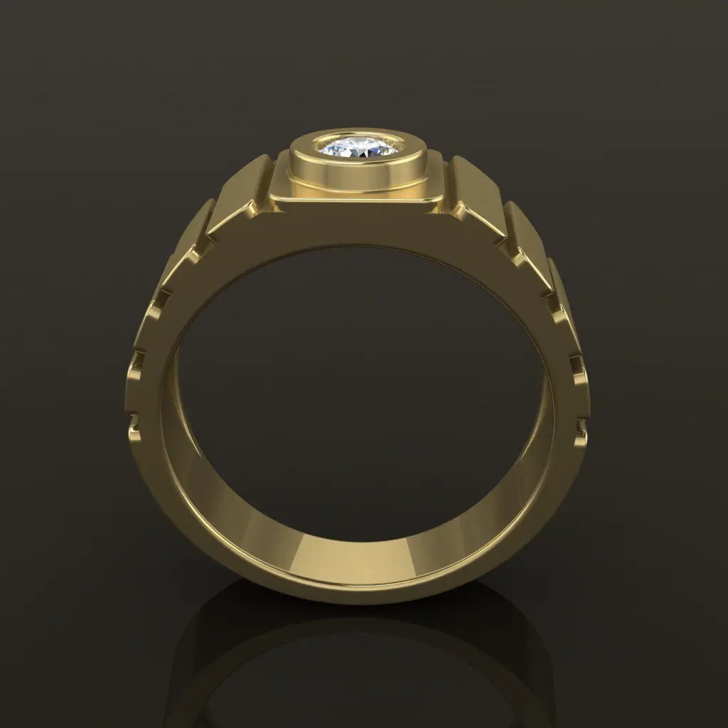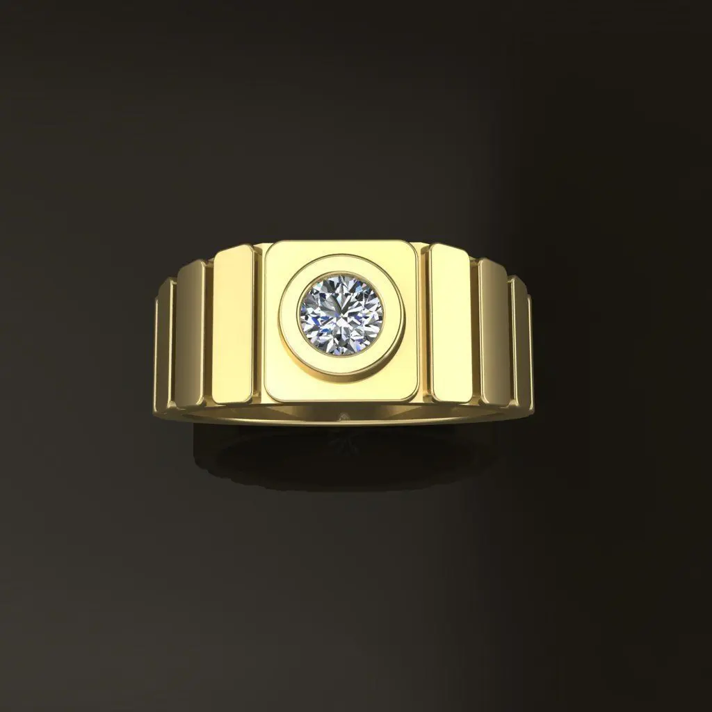 Signet Diamond Bezel Ring Band Tappered Box Step MIx Size ( 4mm )