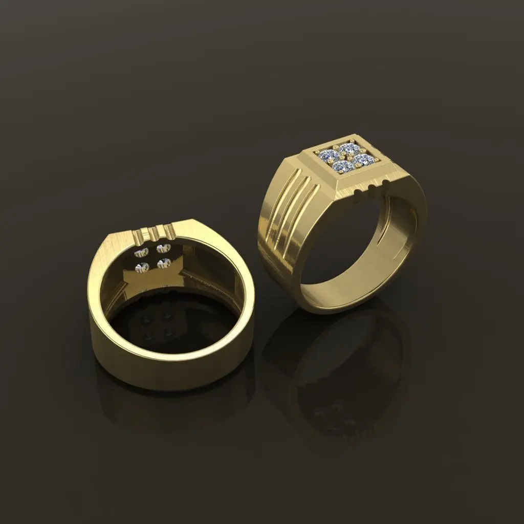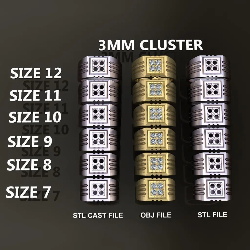 Signet Ring Square 4 Stone Cluster Mix Size Band Size