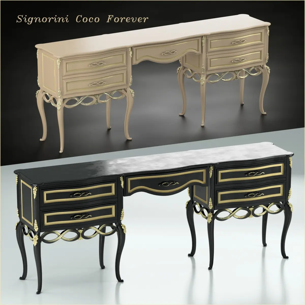 Signorini Coco Forever toilet table in classic Italian style.The file contains the formats STL + OBJ + max12Maps in high resolution, which allowed finely adjust the material for detailed renderingThe table is provided in two versions of the material - ivory and black.